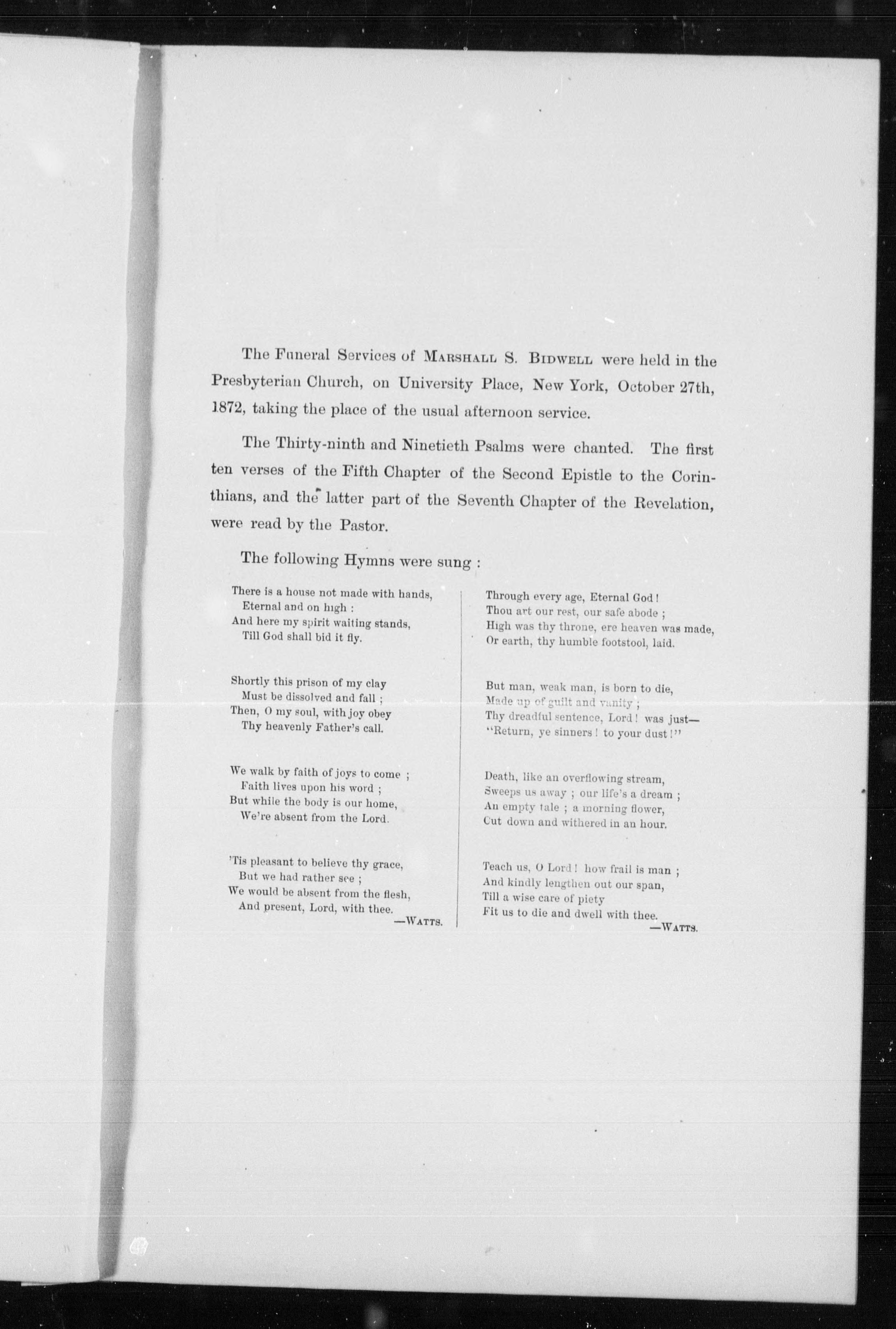 - Sermon preached at the funeral services of Marshall S. Bidwell