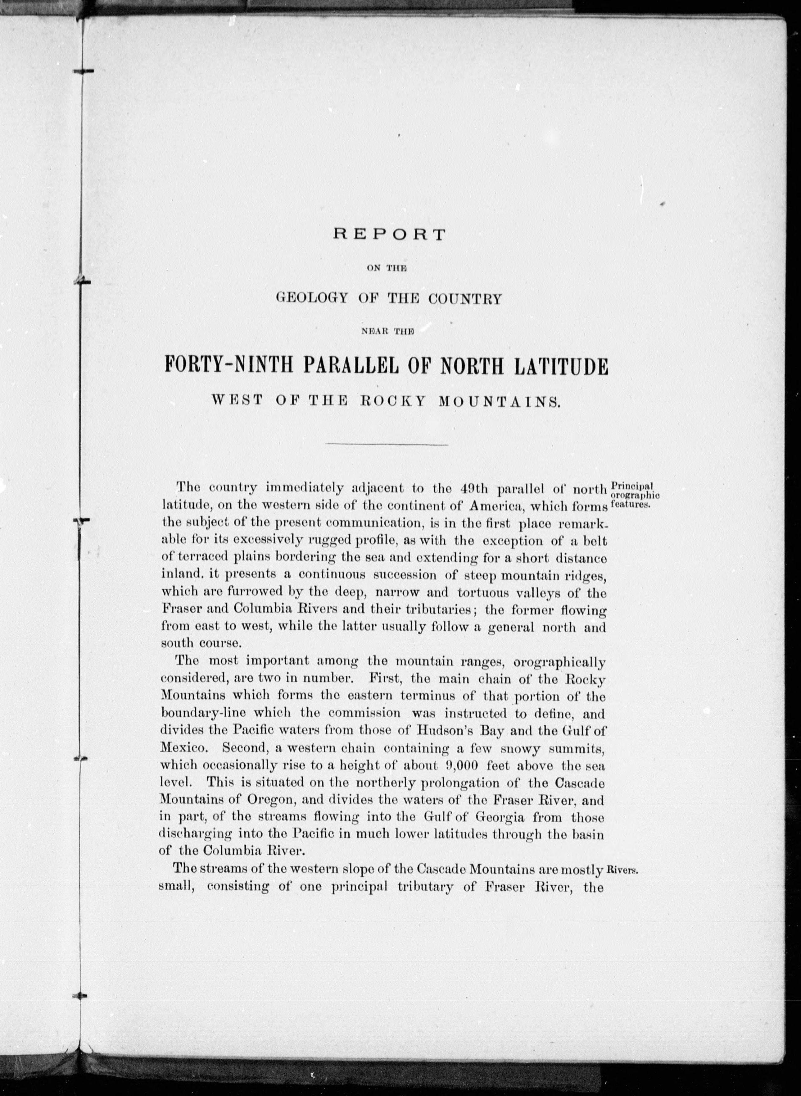 - Report on the geology of the country near the forty-ninth parallel of north latitude west of the Rocky Mountains : from observations made 1859-1861