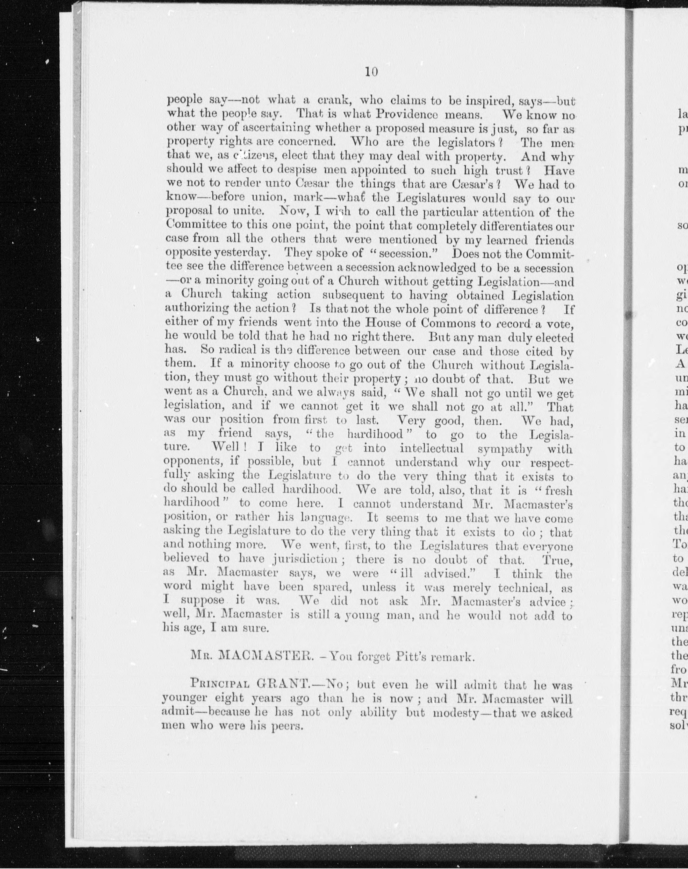 Address by principal Grant before the Private Bills Committee of the House of Commons, on March 16th, 1882 : with reference to the Temporalities Fund Bill.