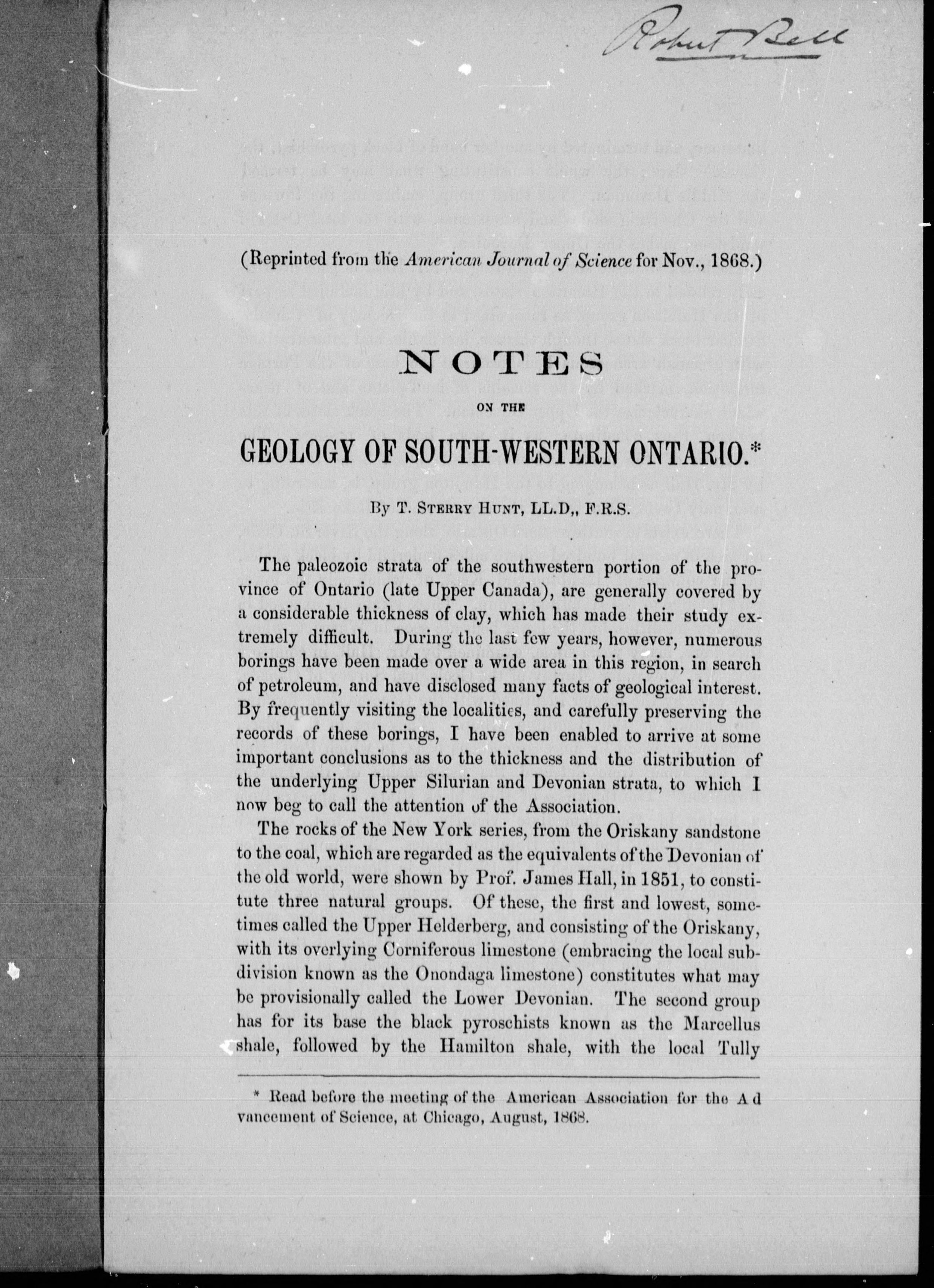 "Read before the meeting of the American Association for the Advancement of Science, at Chicago, August, 1868"