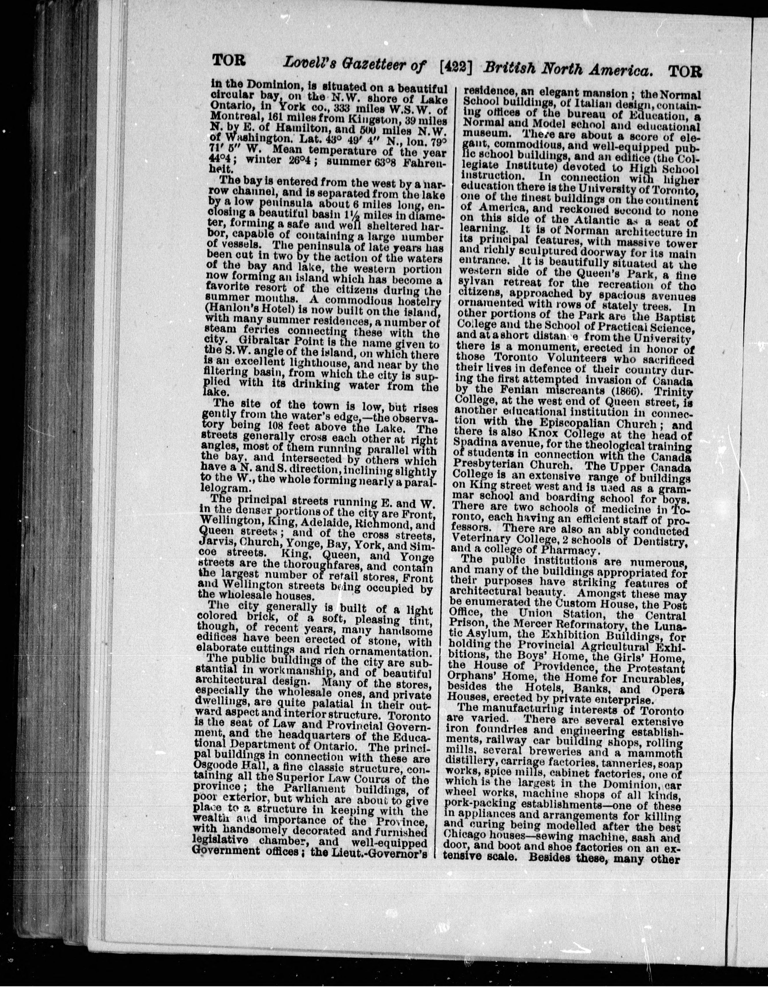 Lovell's gazeteer of British North America : containing the latest and most authentic descriptions of over 7,500 cities, towns, villages and places, in the provinces of Ontario, Quebec, Nova Scotia, New Brunswick, Prince Edward Island, Manitoba, British Columbia, the North West Territories, and Newfoundland