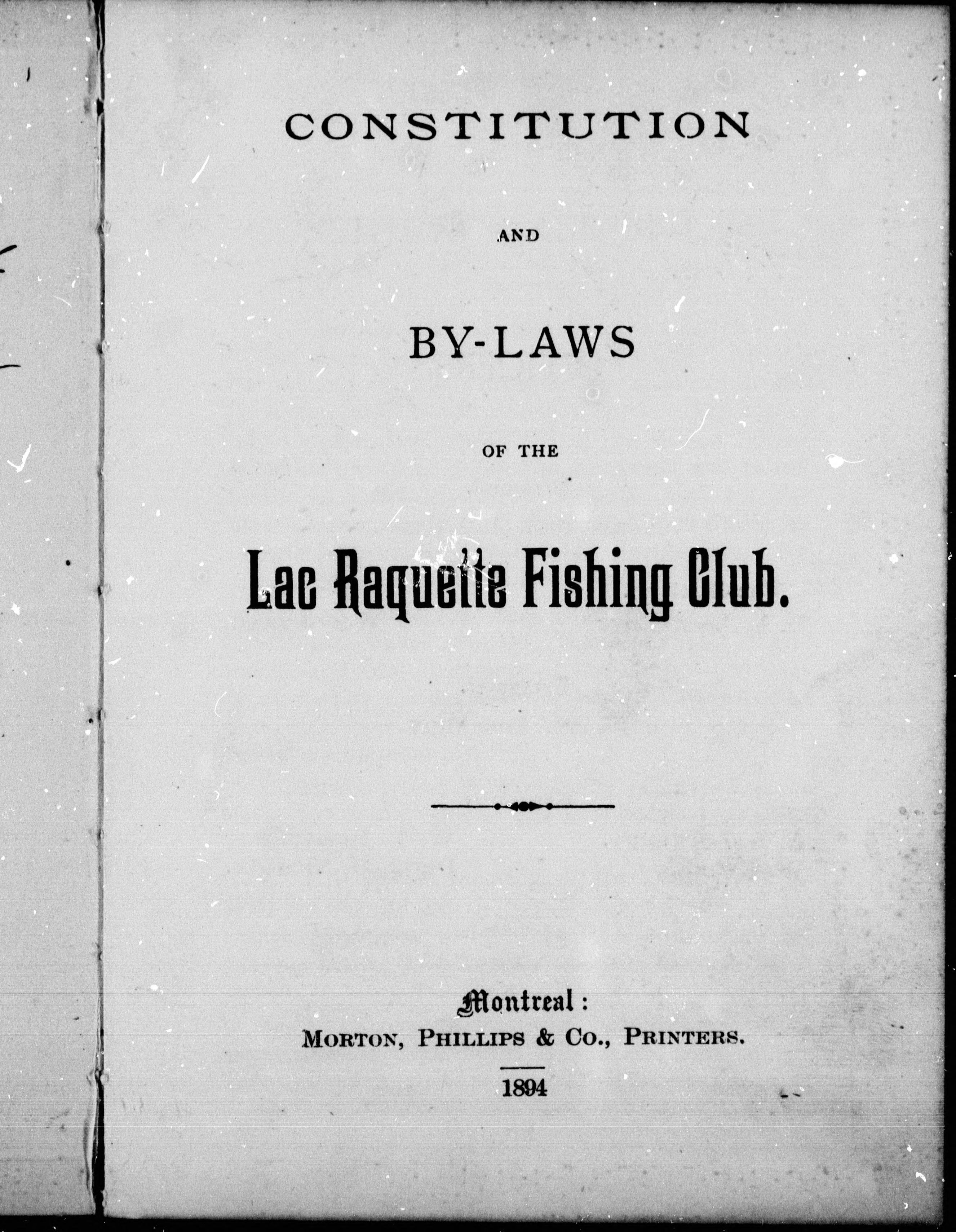 Constitution and by-laws of the Lac Raquette Fishing Club.