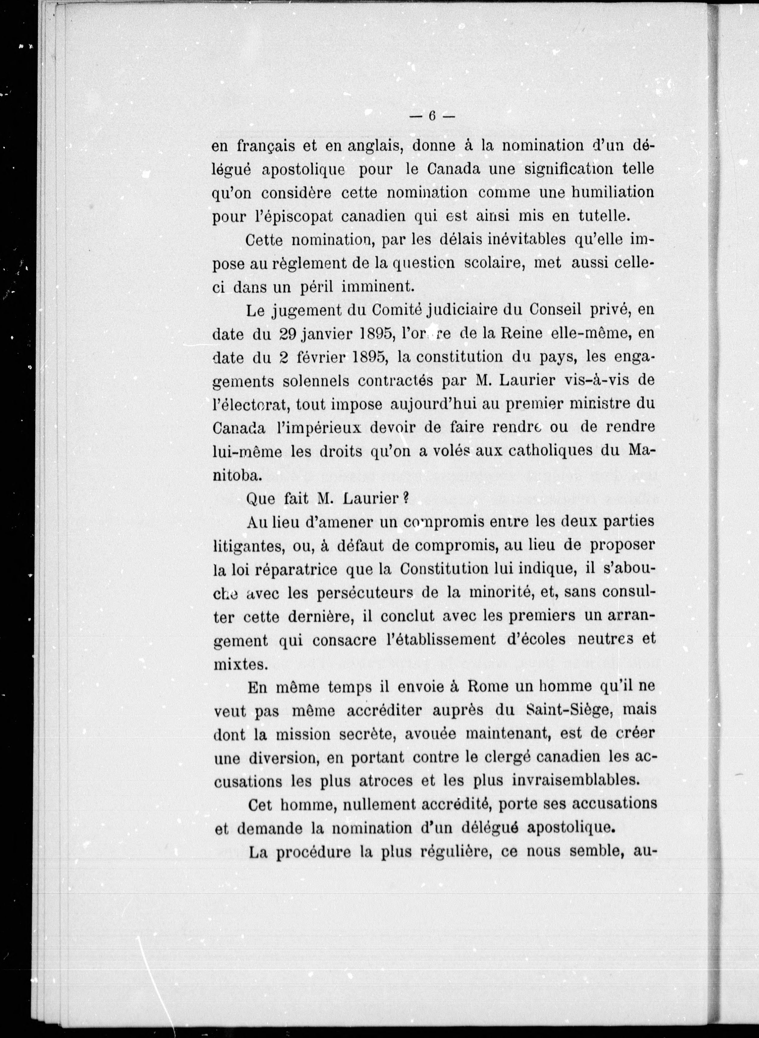 Observations sur la nomination d'un délégué apostolique au Canada /