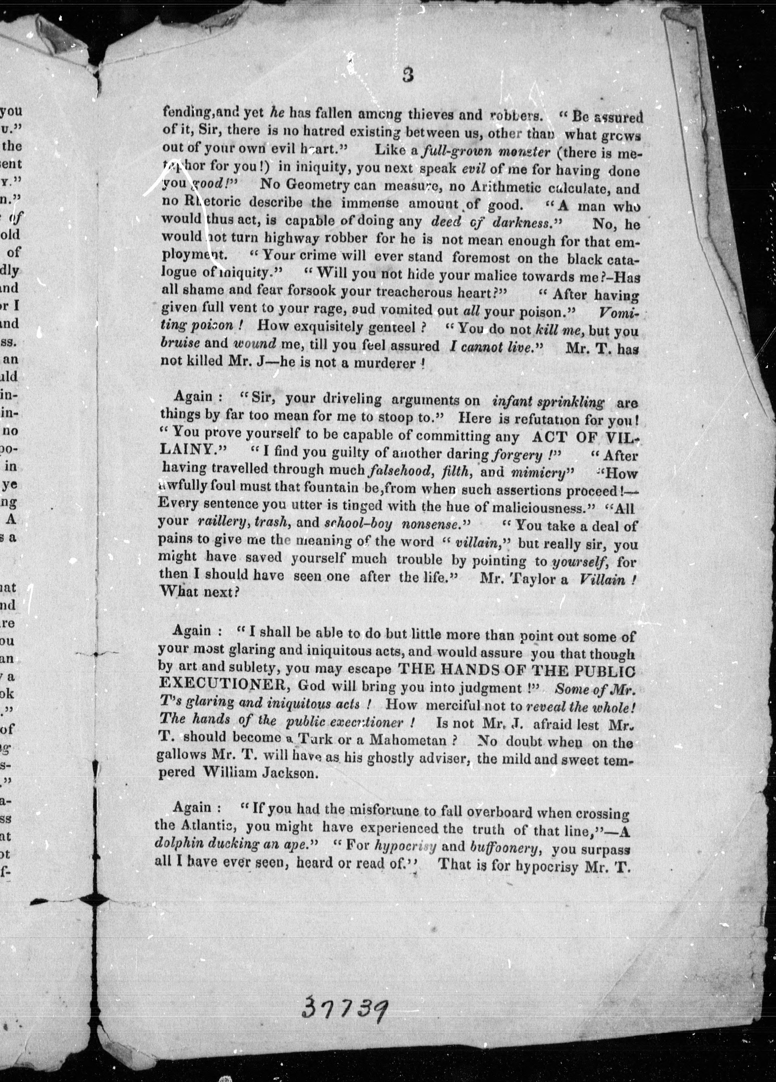 - Jackson, William. The portrait of the Rev. Thomas Taylor, or, The hypocrite unmasked.