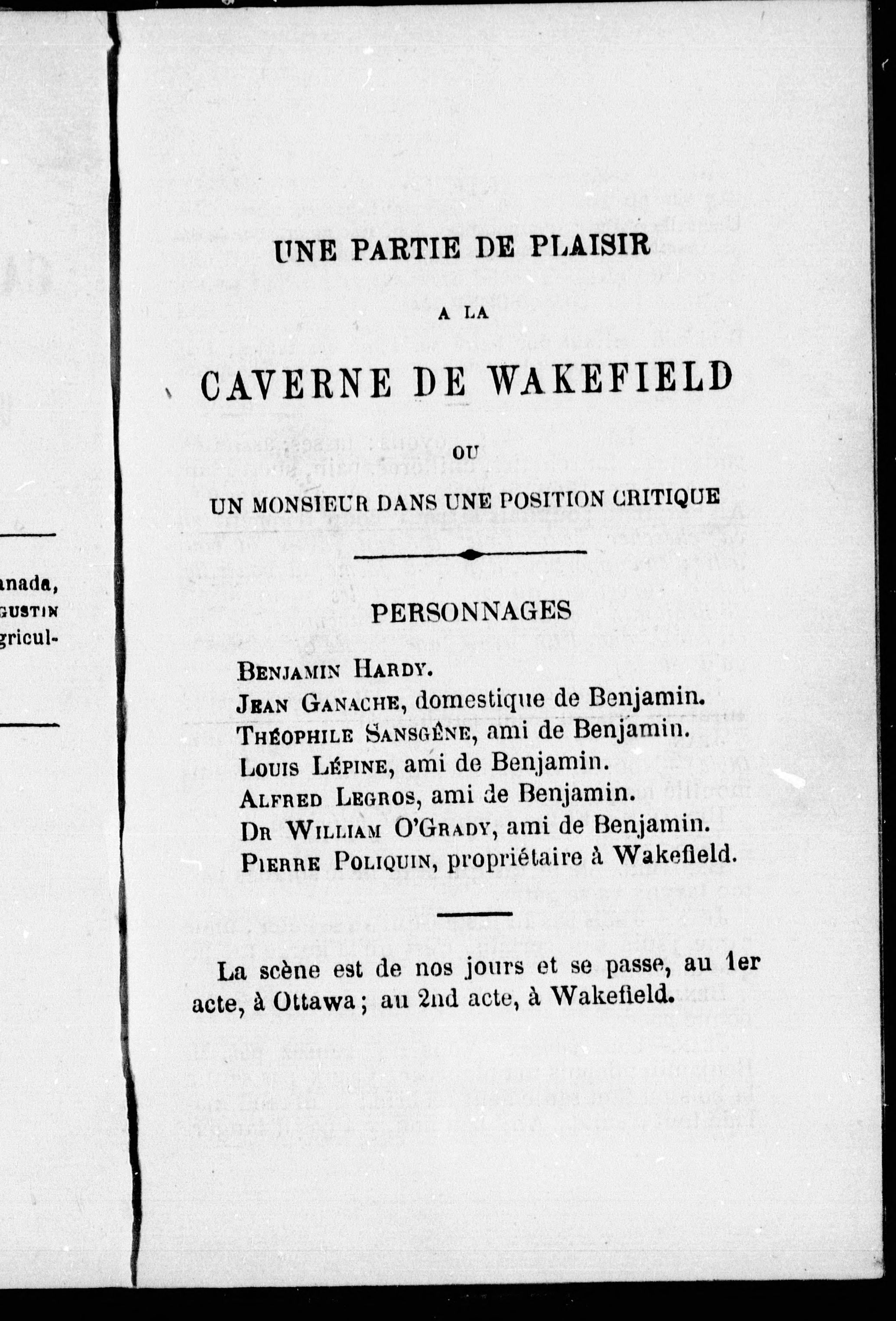 - Une partie de plaisir à la caverne de Wakefield, ou, Un monsieur dans une position critique : comédie en deux actes