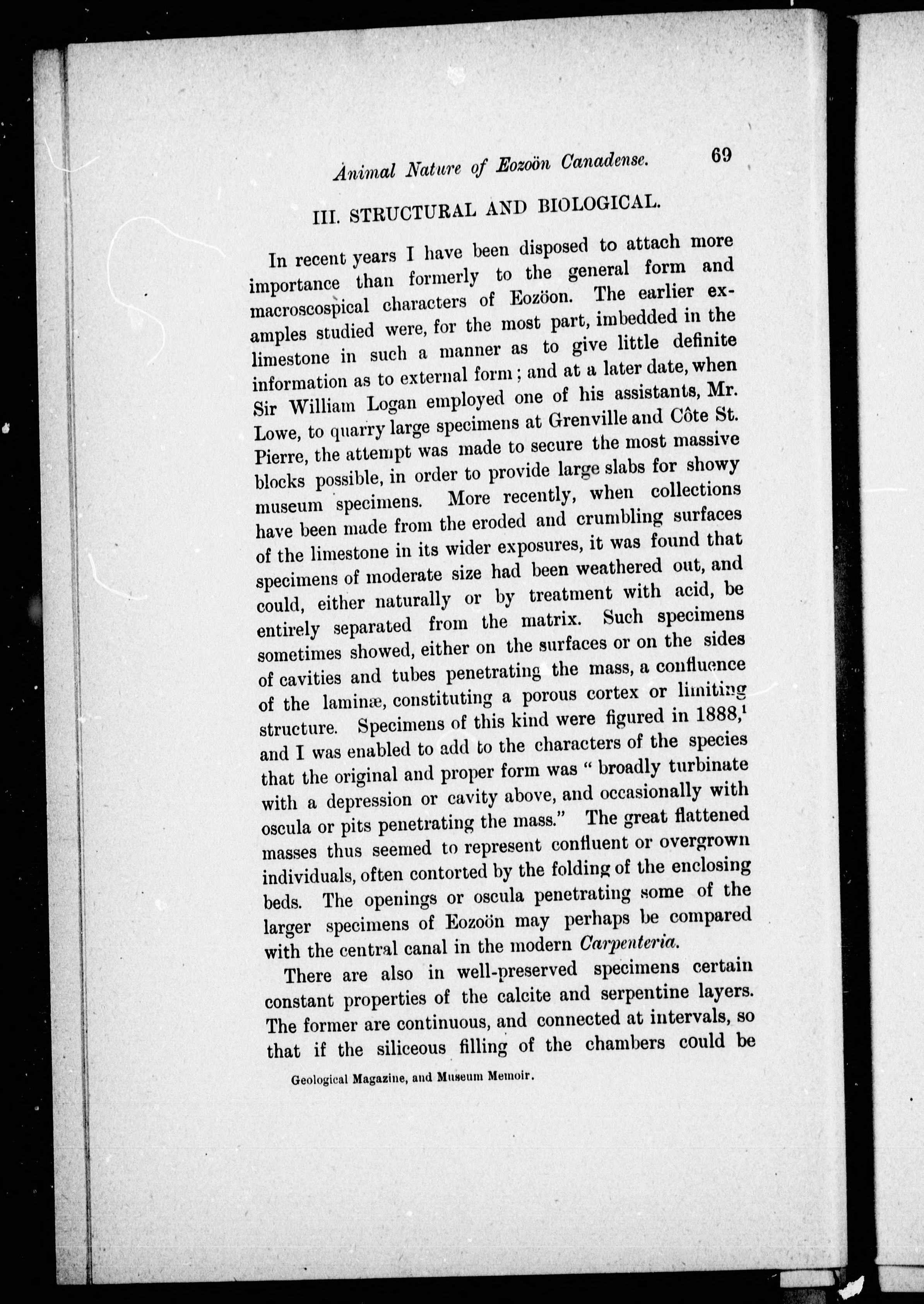 Review of the evidence for the animal nature of Eozöon Canadense :