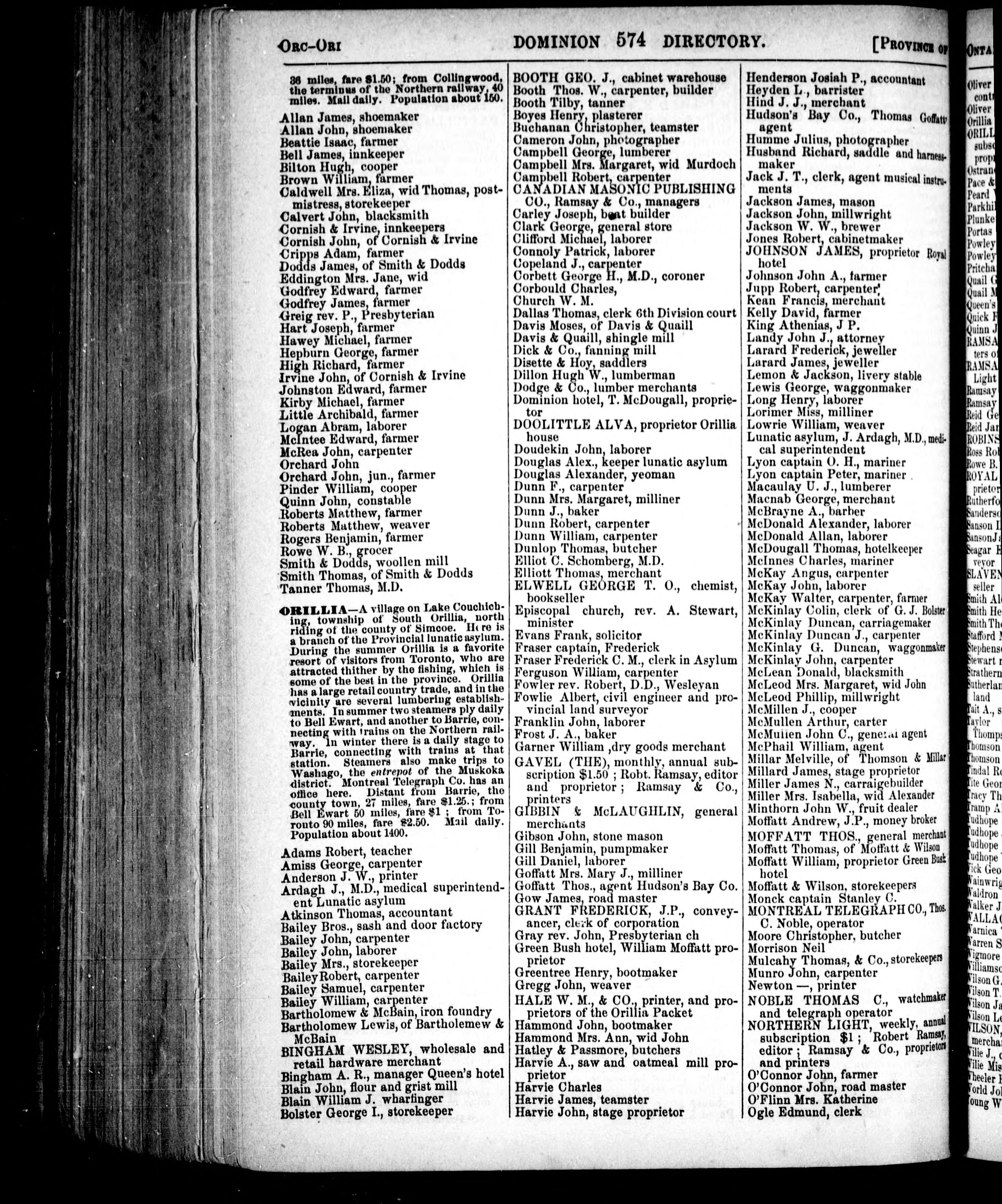 Lovell's Canadian Dominion directory for 1871 : containing names of professional and business men, and other inhabitants, of the cities, towns and villages, throughout the provinces of Ontario, Quebec, Nova Scotia, New Brunswick, Newfoundland, and Prince Edward Island,...corrected to January, 1871.