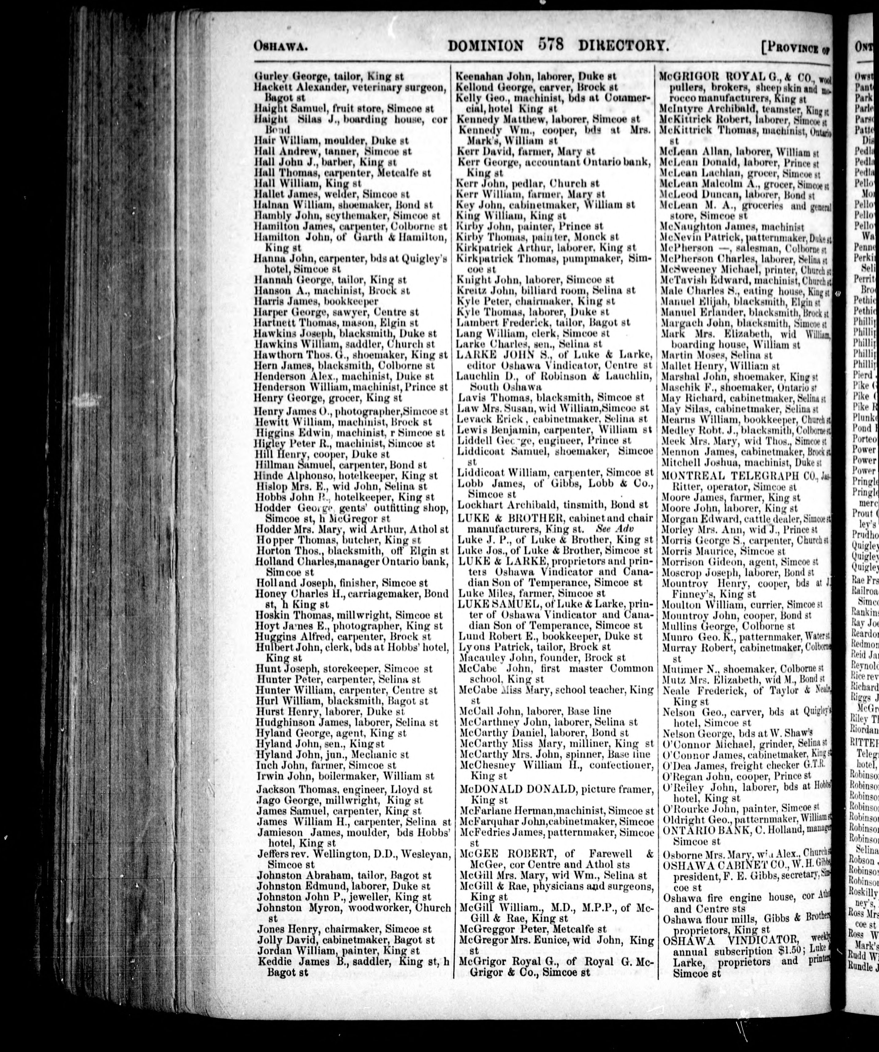 Lovell's Canadian Dominion directory for 1871 : containing names of professional and business men, and other inhabitants, of the cities, towns and villages, throughout the provinces of Ontario, Quebec, Nova Scotia, New Brunswick, Newfoundland, and Prince Edward Island,...corrected to January, 1871.