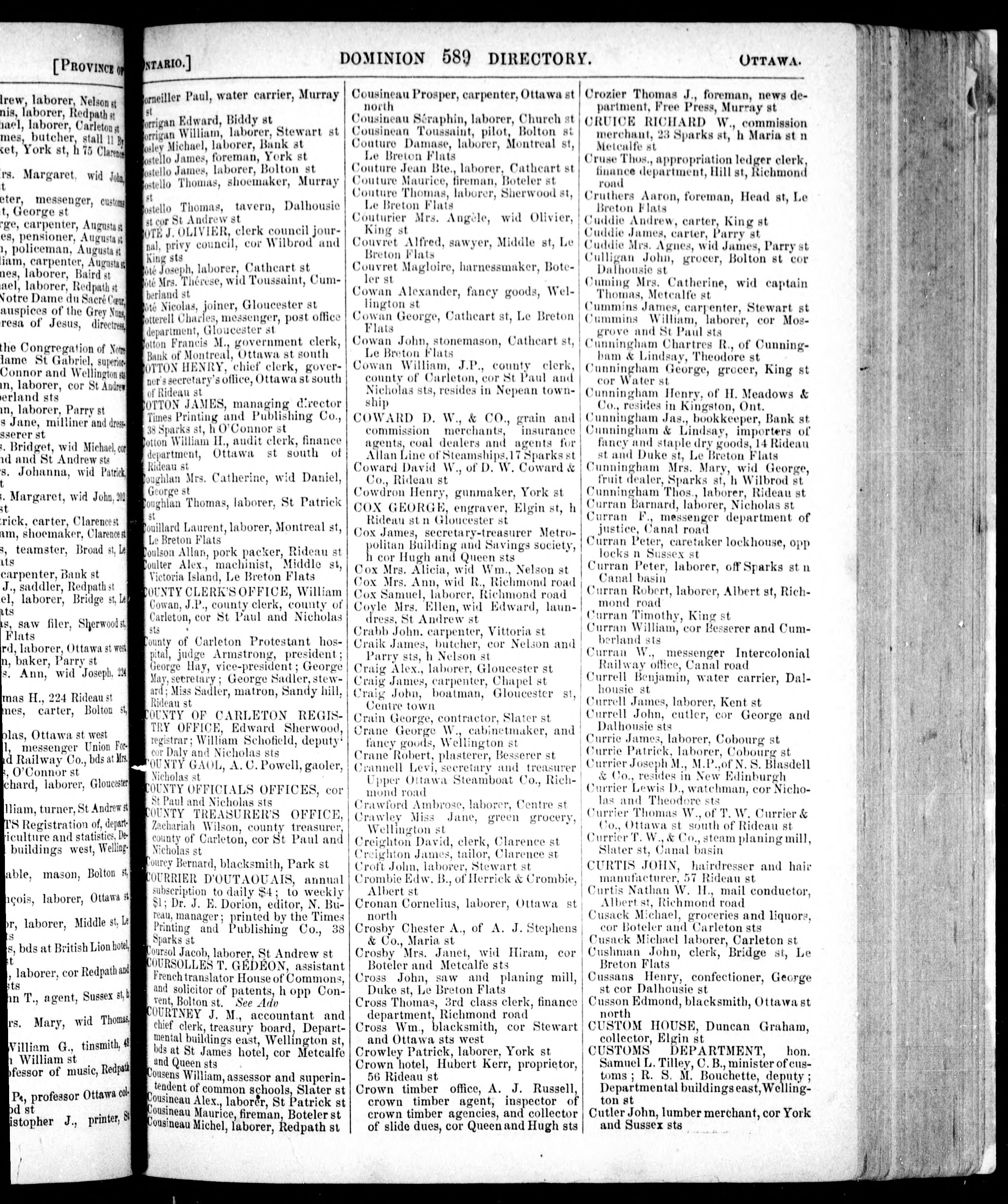 Lovell's Canadian Dominion directory for 1871 : containing names of professional and business men, and other inhabitants, of the cities, towns and villages, throughout the provinces of Ontario, Quebec, Nova Scotia, New Brunswick, Newfoundland, and Prince Edward Island,...corrected to January, 1871.