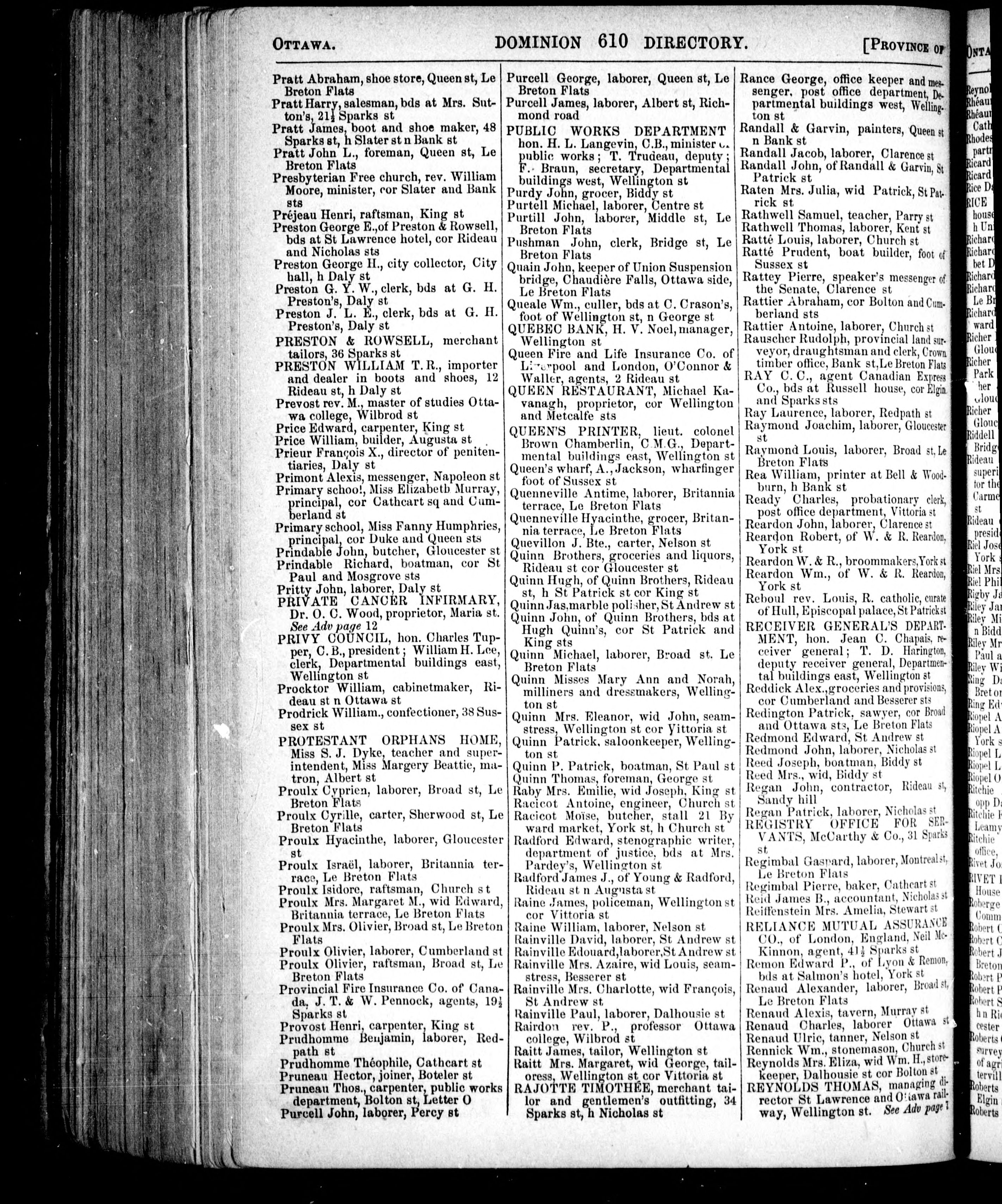 Lovell's Canadian Dominion directory for 1871 : containing names of professional and business men, and other inhabitants, of the cities, towns and villages, throughout the provinces of Ontario, Quebec, Nova Scotia, New Brunswick, Newfoundland, and Prince Edward Island,...corrected to January, 1871.