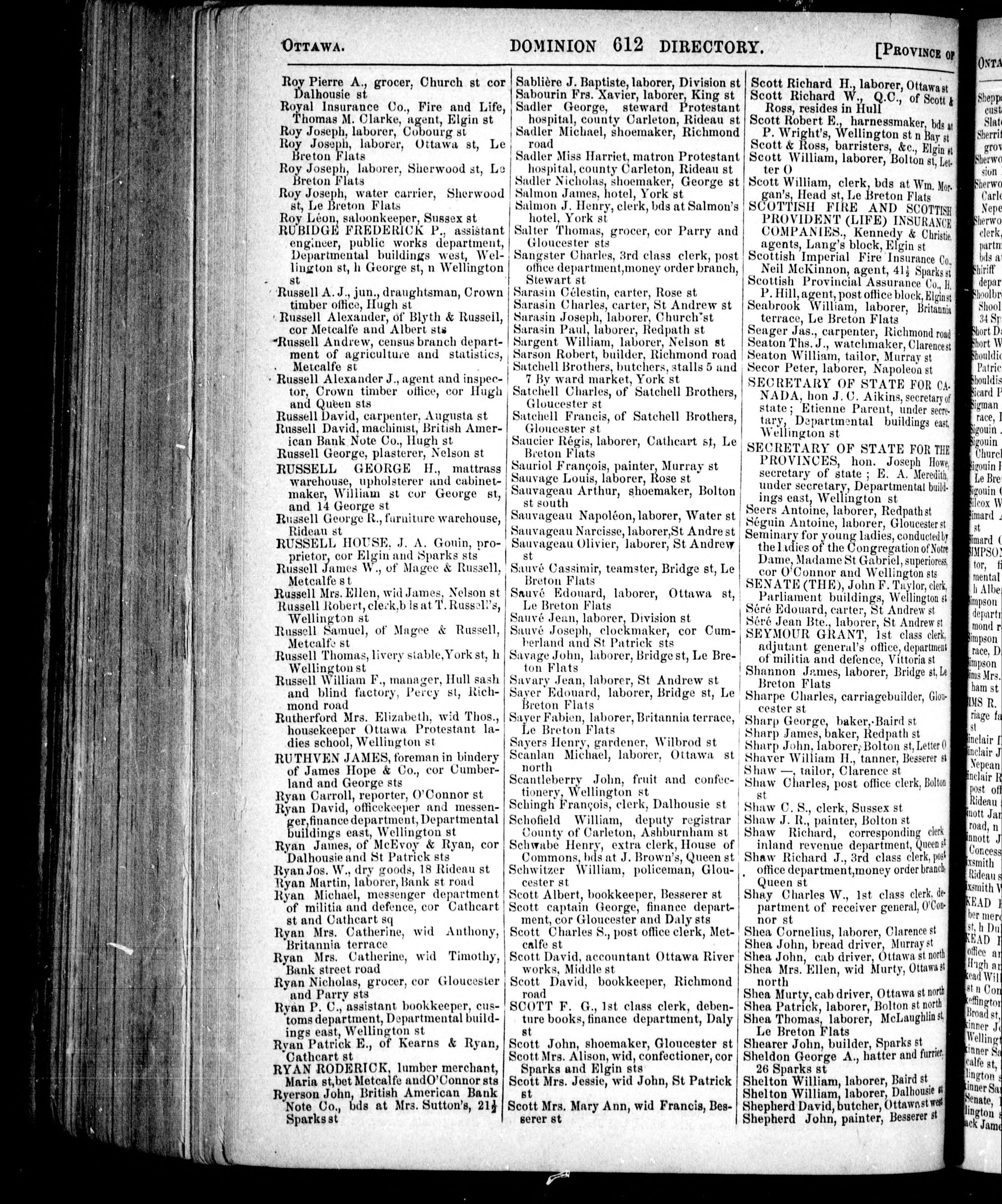 Lovell's Canadian Dominion directory for 1871 : containing names of professional and business men, and other inhabitants, of the cities, towns and villages, throughout the provinces of Ontario, Quebec, Nova Scotia, New Brunswick, Newfoundland, and Prince Edward Island,...corrected to January, 1871.