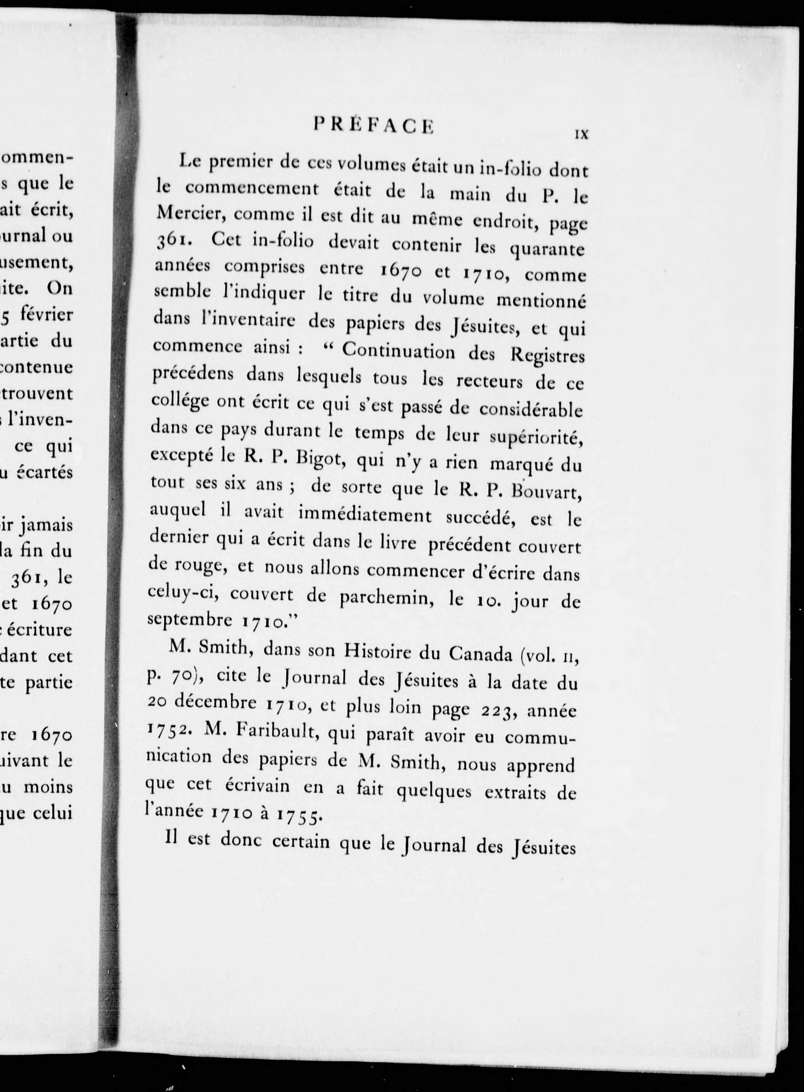 L'original de 1645 au mois d'août 1665 est de la main du Père Lalemant; d'août 1665 à 1668, il est de la main du Père Le Mercier. Cf. The Jesuit relations, edition by R.G. Thwaites, volume 27-51, où l'on trouvera la traduction en anglais du Journal.