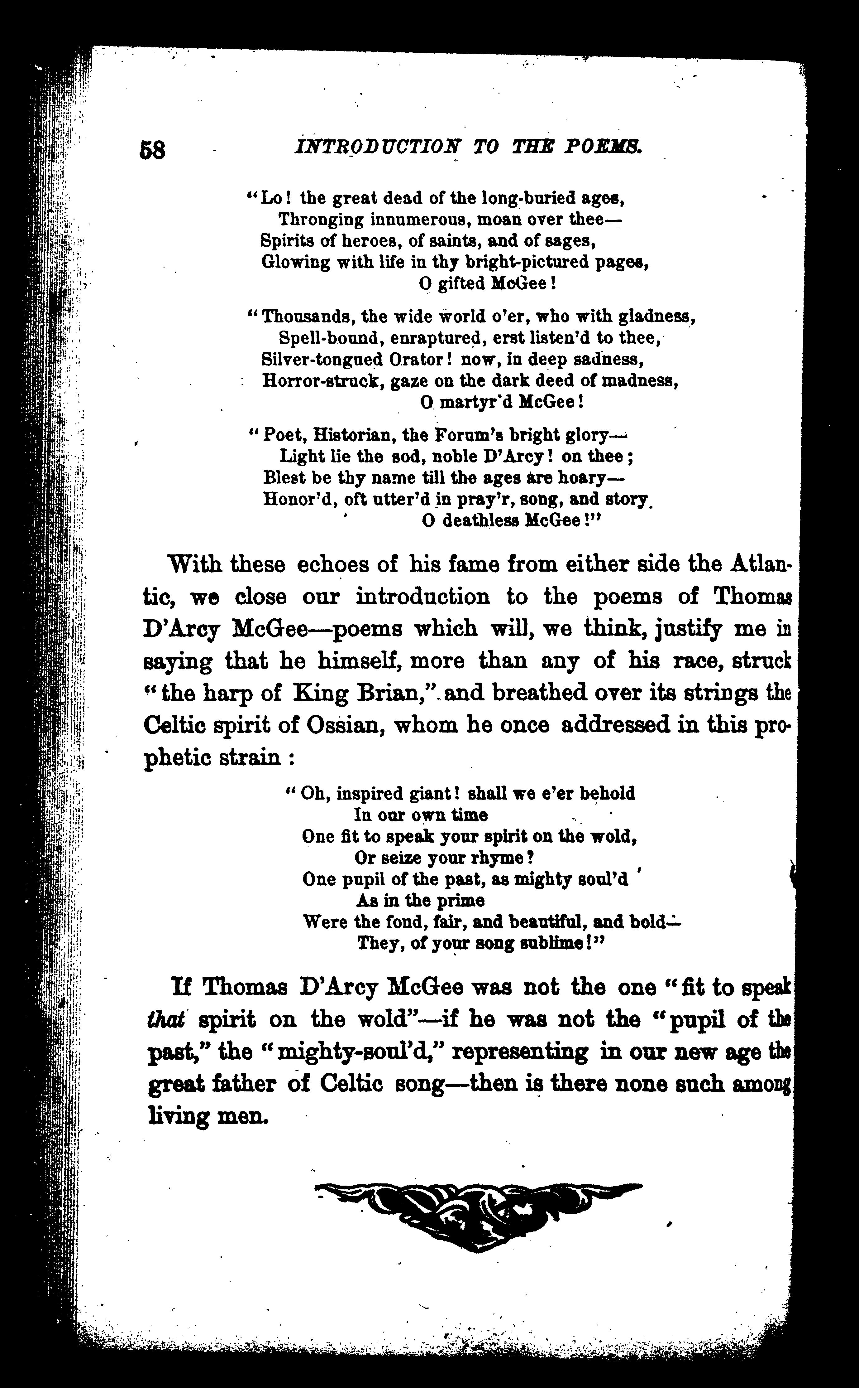 "I'd rather turn one simple verse, True to the Celtic ear, Than classic odes I might rehearse, With Senates list'ning near. McGee ..."