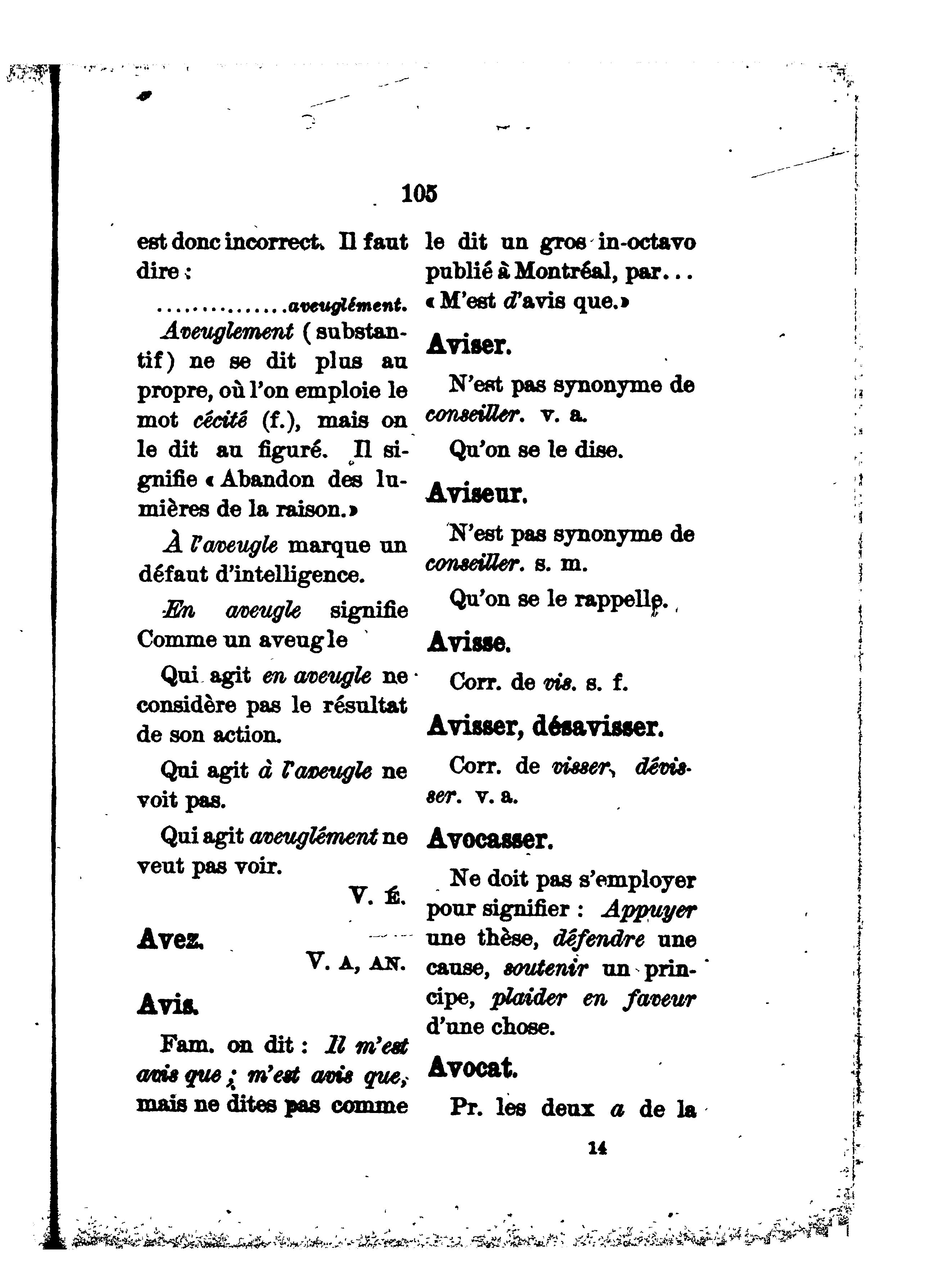 Dictionnaire des locutions vicieuses du Canada avec leur correction :