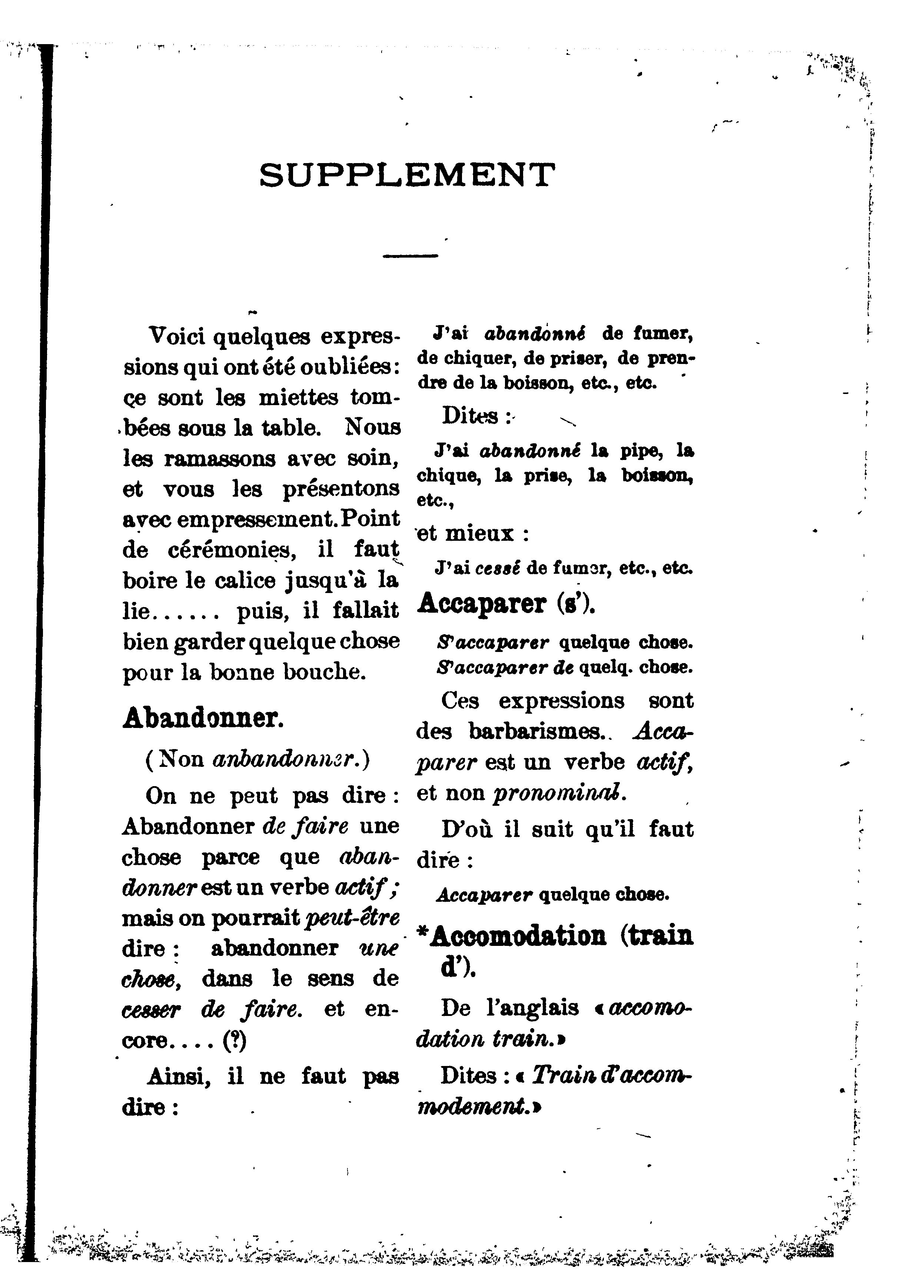 Dictionnaire des locutions vicieuses du Canada avec leur correction :