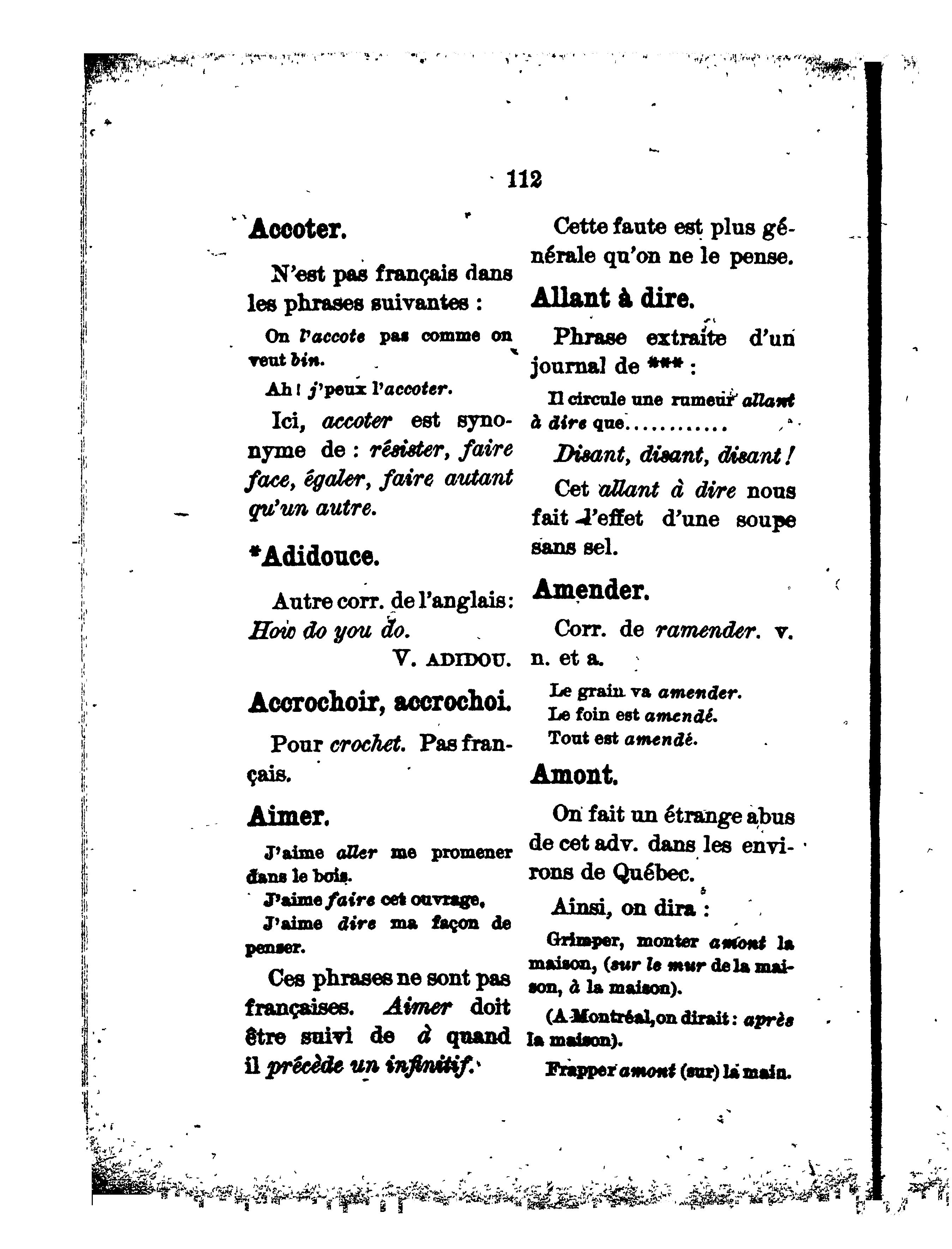 Dictionnaire des locutions vicieuses du Canada avec leur correction :