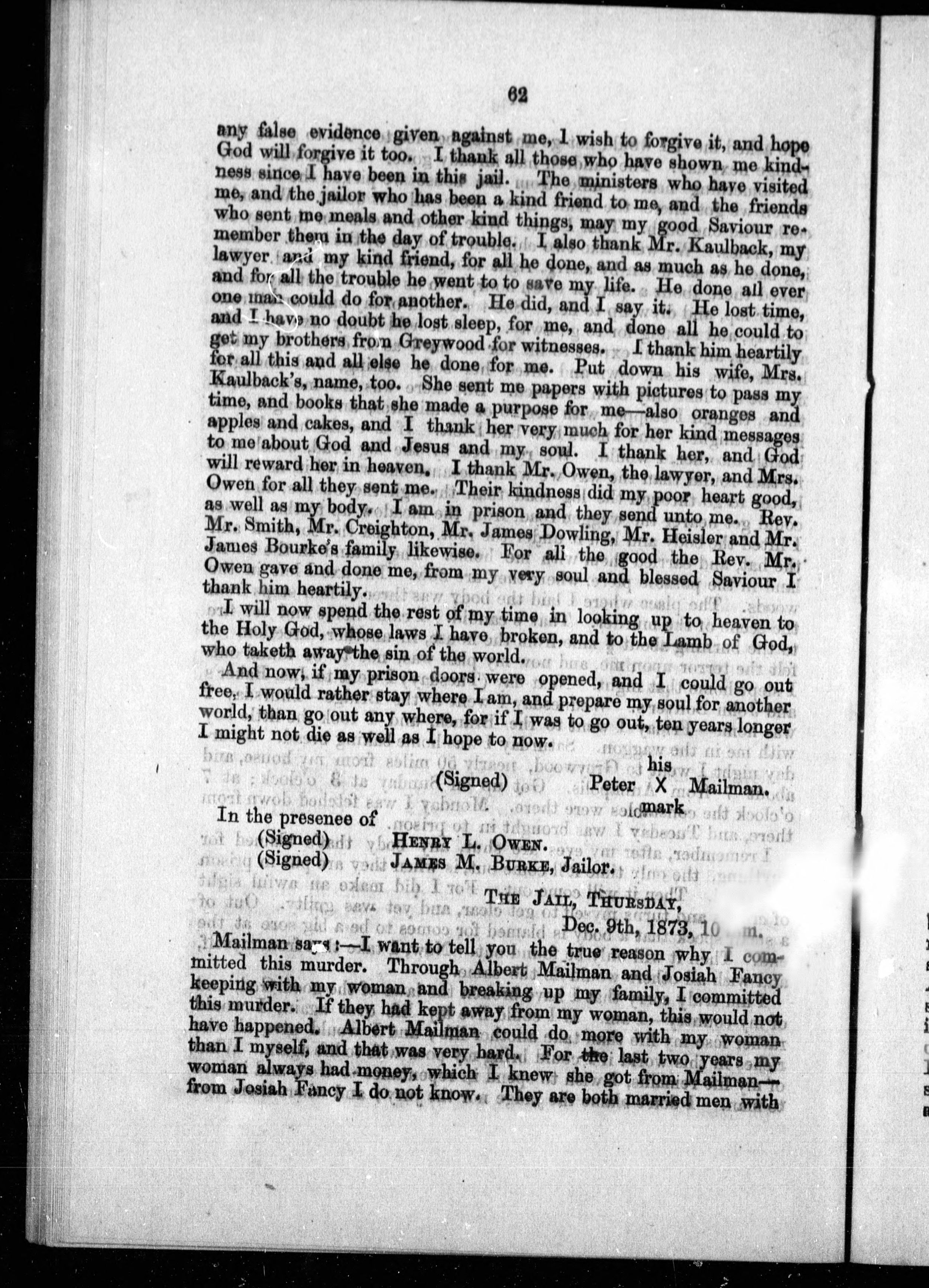 The trial of Peter Mailman for the murder of his wife at Lunenburg, N. S. : together with the circumstances of the murder, incidents of the trial, the prisoner's confession, his execution, full reports of evidence and speeches of counsel in extenso