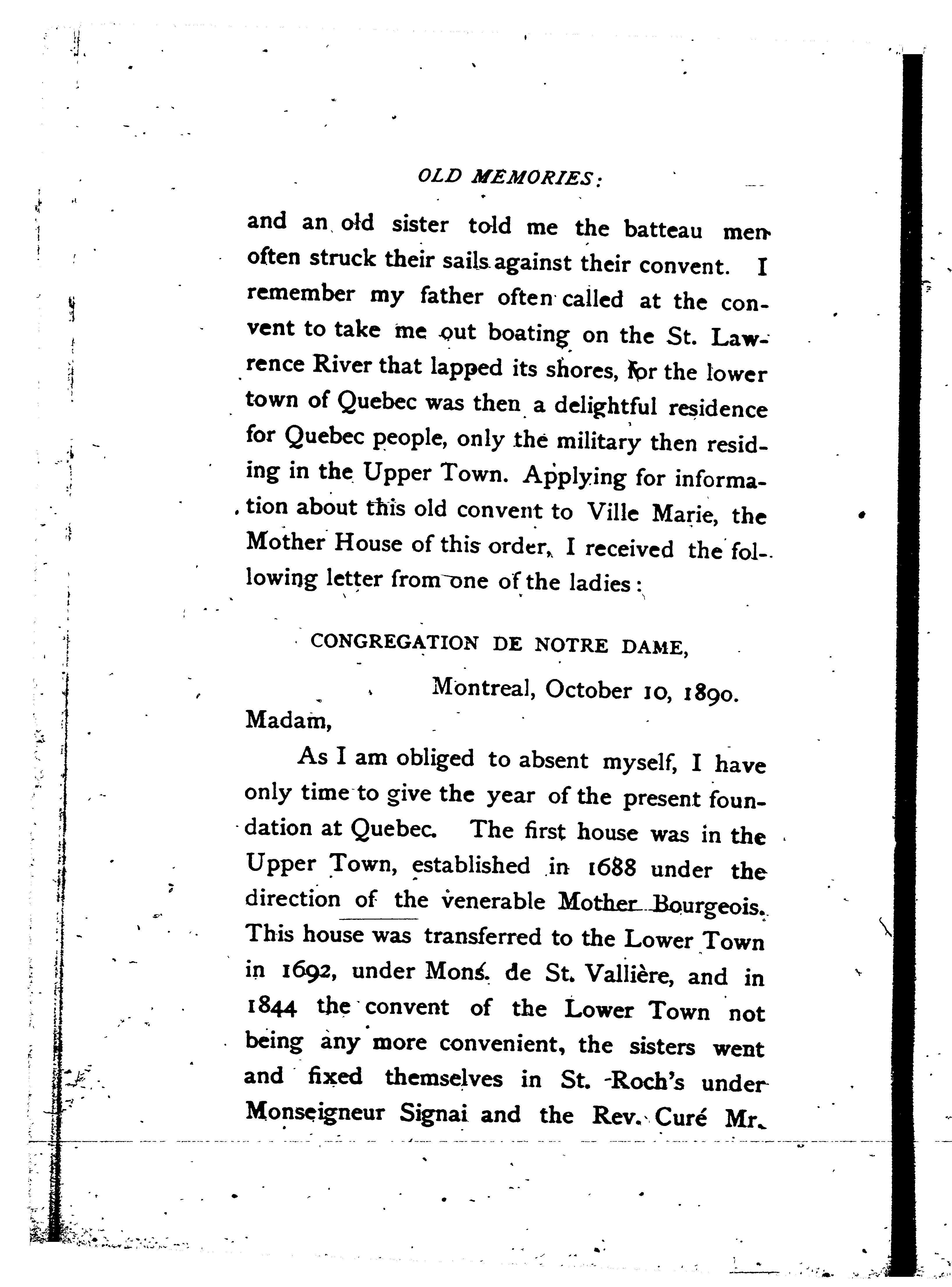 - Old memories : amusing and historical, a sequel to "Reminiscences of old Quebec"