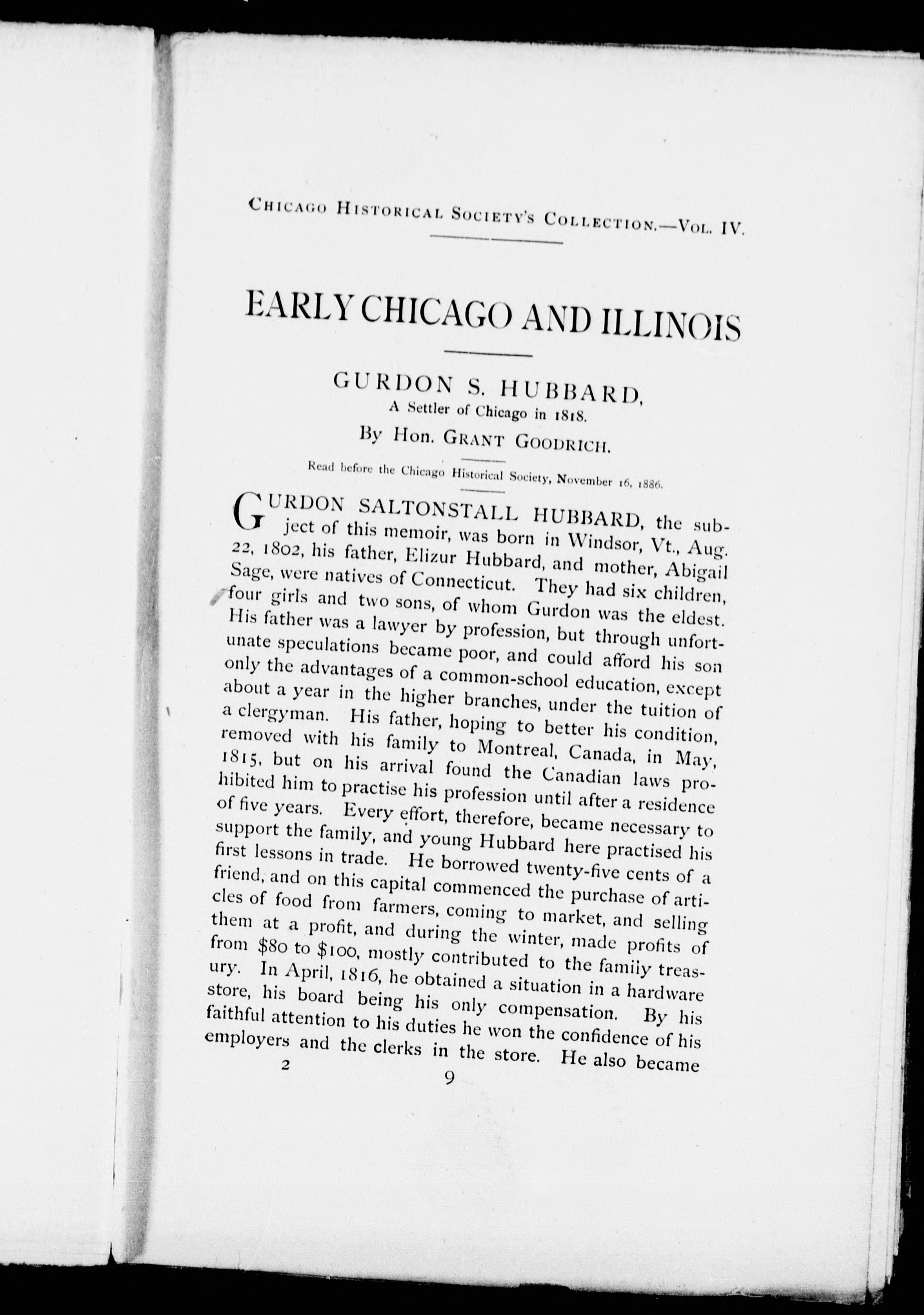 Original issued in series: Chicago Historical Society's collection ; volume 4.