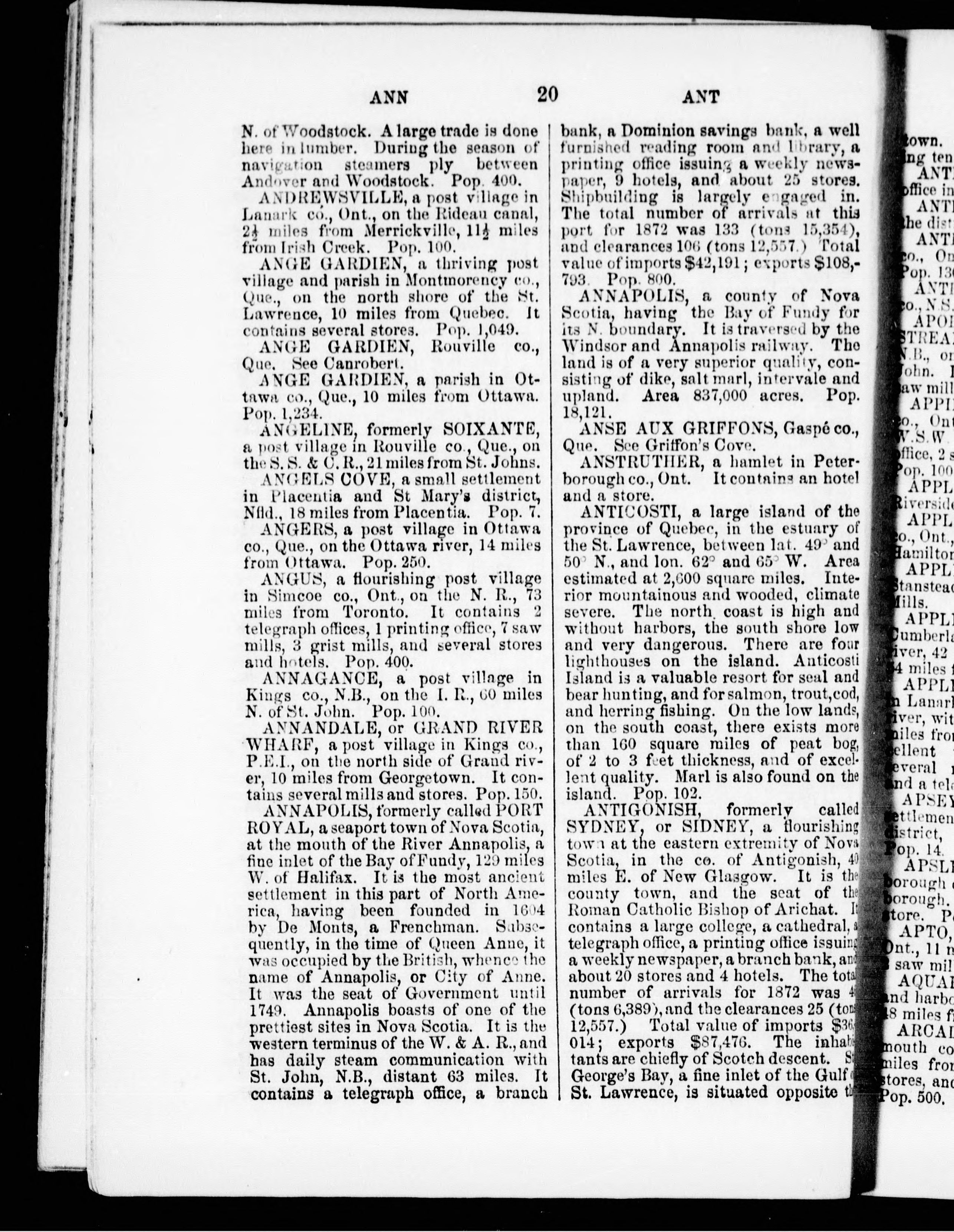 Lovell's gazetteer of British North America : containing the latest and most authentic descriptions of over six thousand cities, towns and villages in the provinces of Ontario, Quebec, Nova Scotia, New Brunswick, Newfoundland, Prince Edward Island, Manitoba, British Columbia, and the North West Territories and general information, drawn from official sources, as to the names, locality, extent, etc., of over fifteen hundred lakes and rivers : with a table of routes, showing the proximity of the railroad stations, and sea, lake and river ports, to the cities, towns, villages, etc., in the several provinces