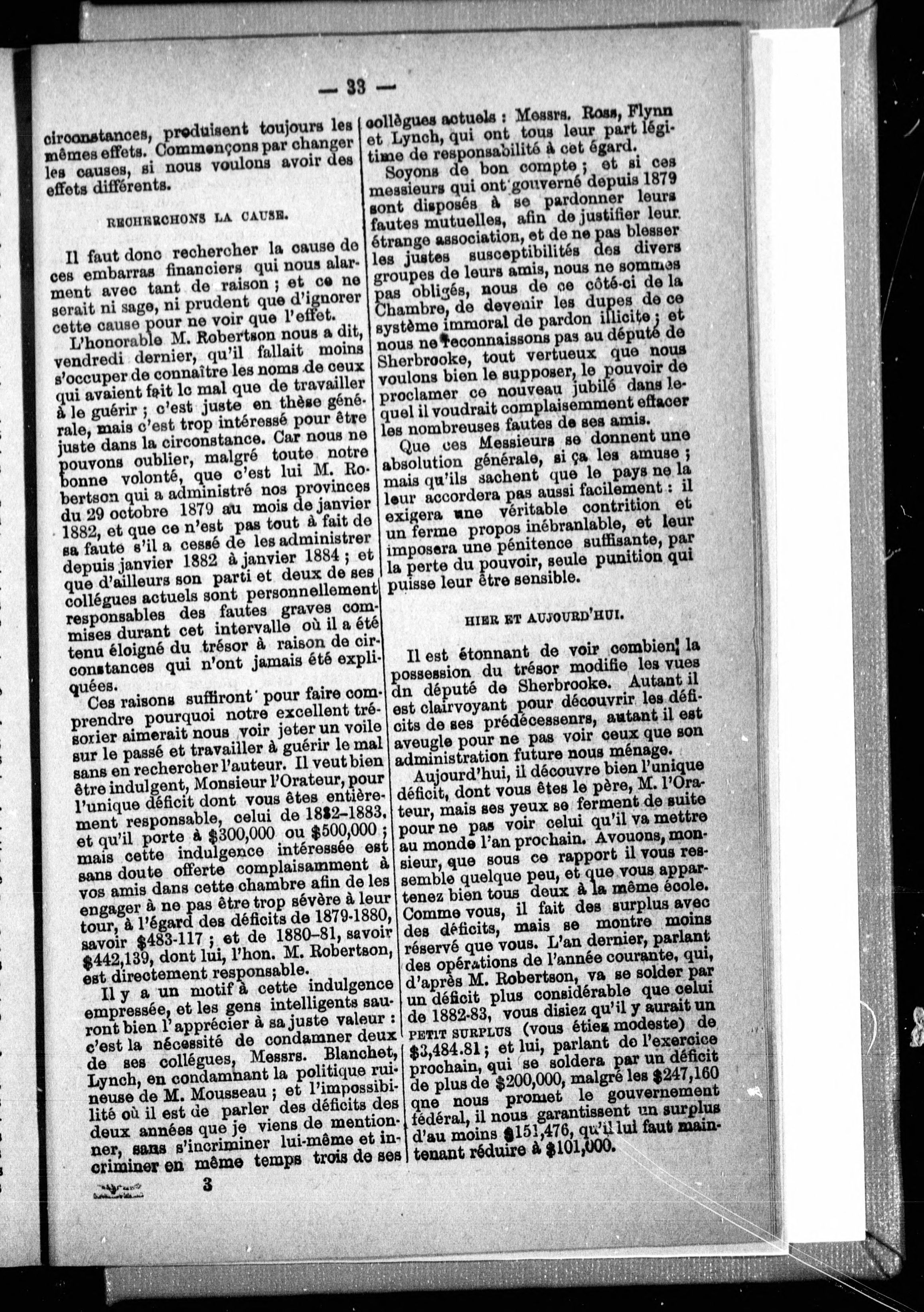 Discours sur le budget prononcé par l'honorable Honoré Mercier, chef d'opposition, à la séance de l'Assemblée législative de la province de Québec, le 7 mai 1884.