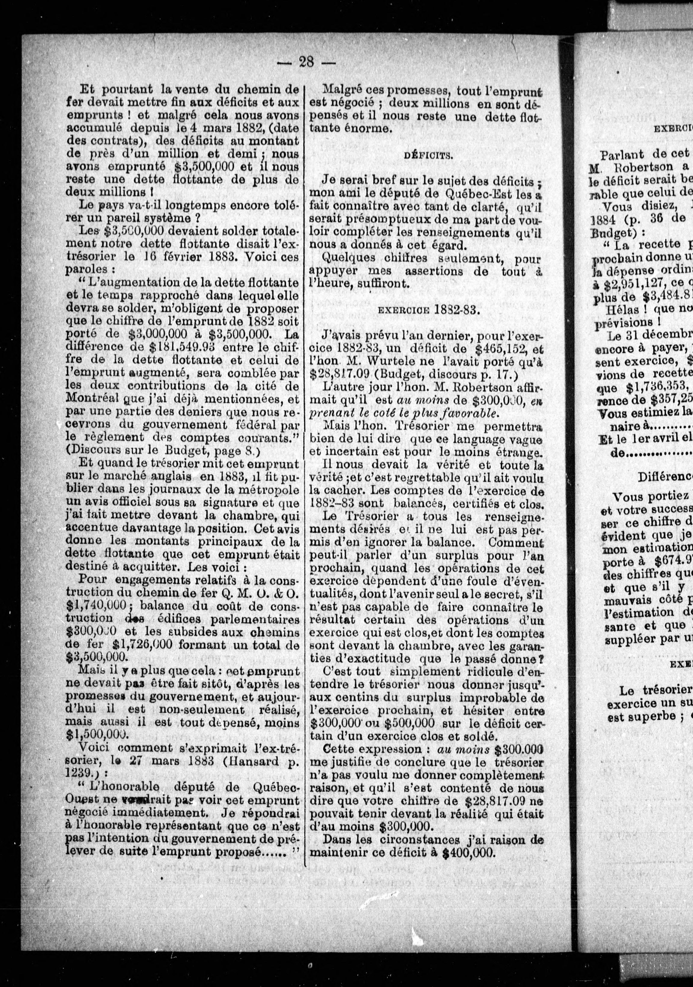 Discours sur le budget prononcé par l'honorable Honoré Mercier, chef d'opposition, à la séance de l'Assemblée législative de la province de Québec, le 7 mai 1884.