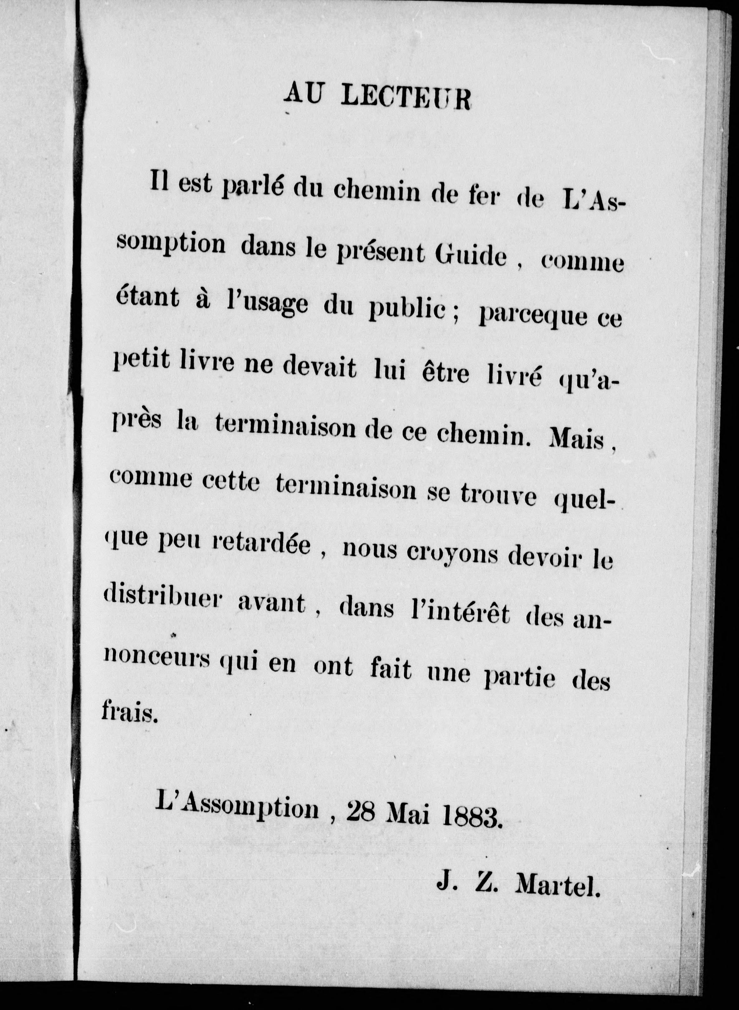 [L'Assomption, Québec? : publisher not identified, 1883?]; 63 images, 60 with full-text search
