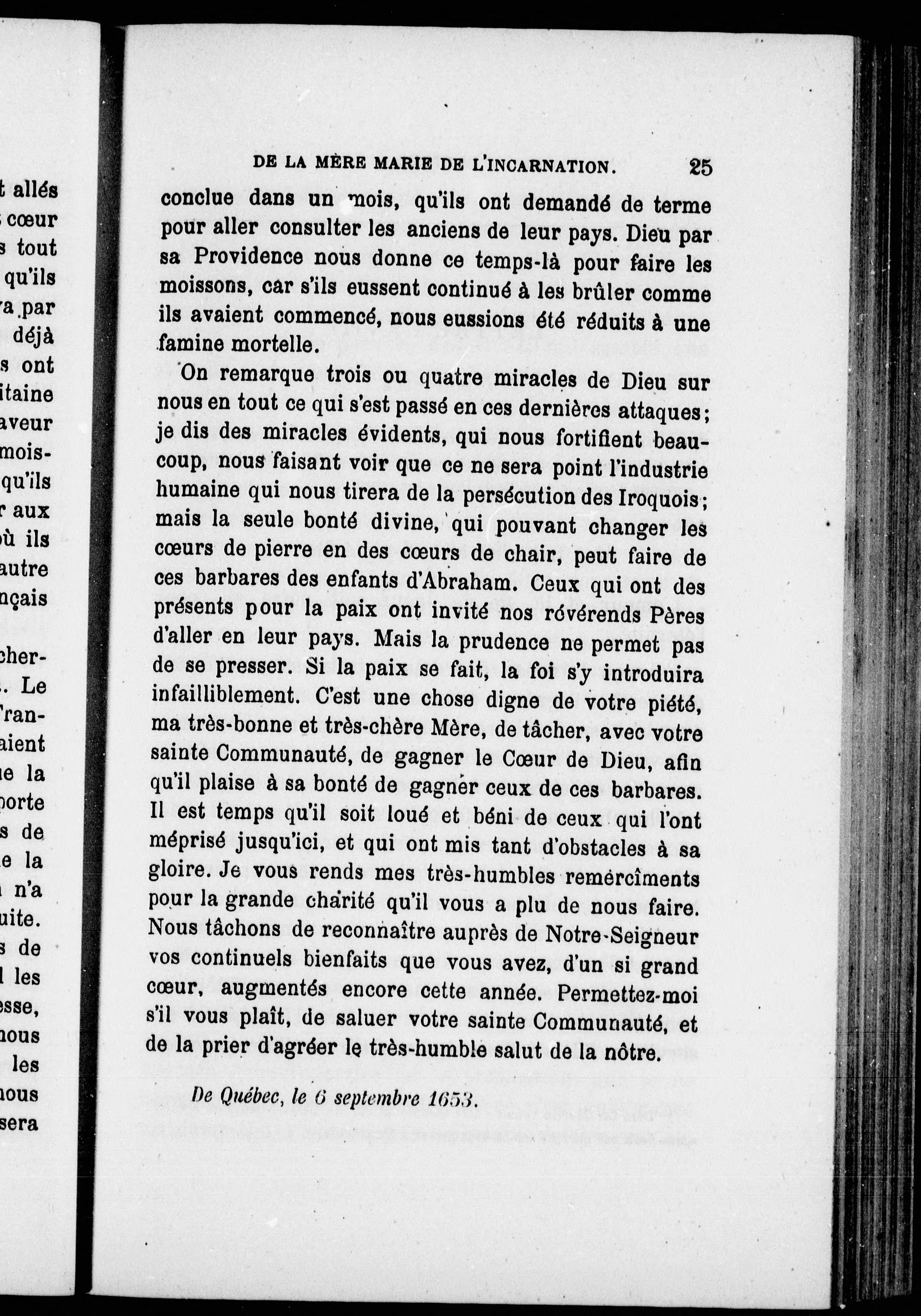 Lettres de la révérende mère Marie de l'Incarnation (née Marie Guyard) :