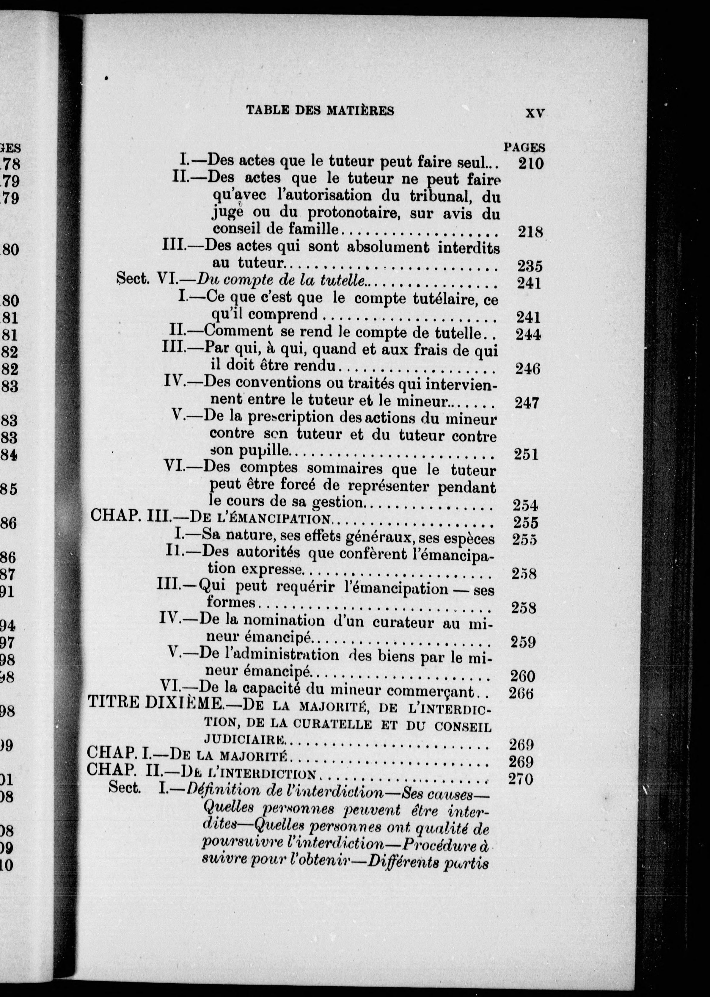 "Contenant les titres de la sépération de corps, de la filiation, de la puissance paternelle, de la minorité, de la tutelle et de l'émancipation, de la majorité, de l'interdiction, de la curatelle et du conseil judicaire, des corporations, de la distinction des biens, de la propriété et de l'usufruit. "