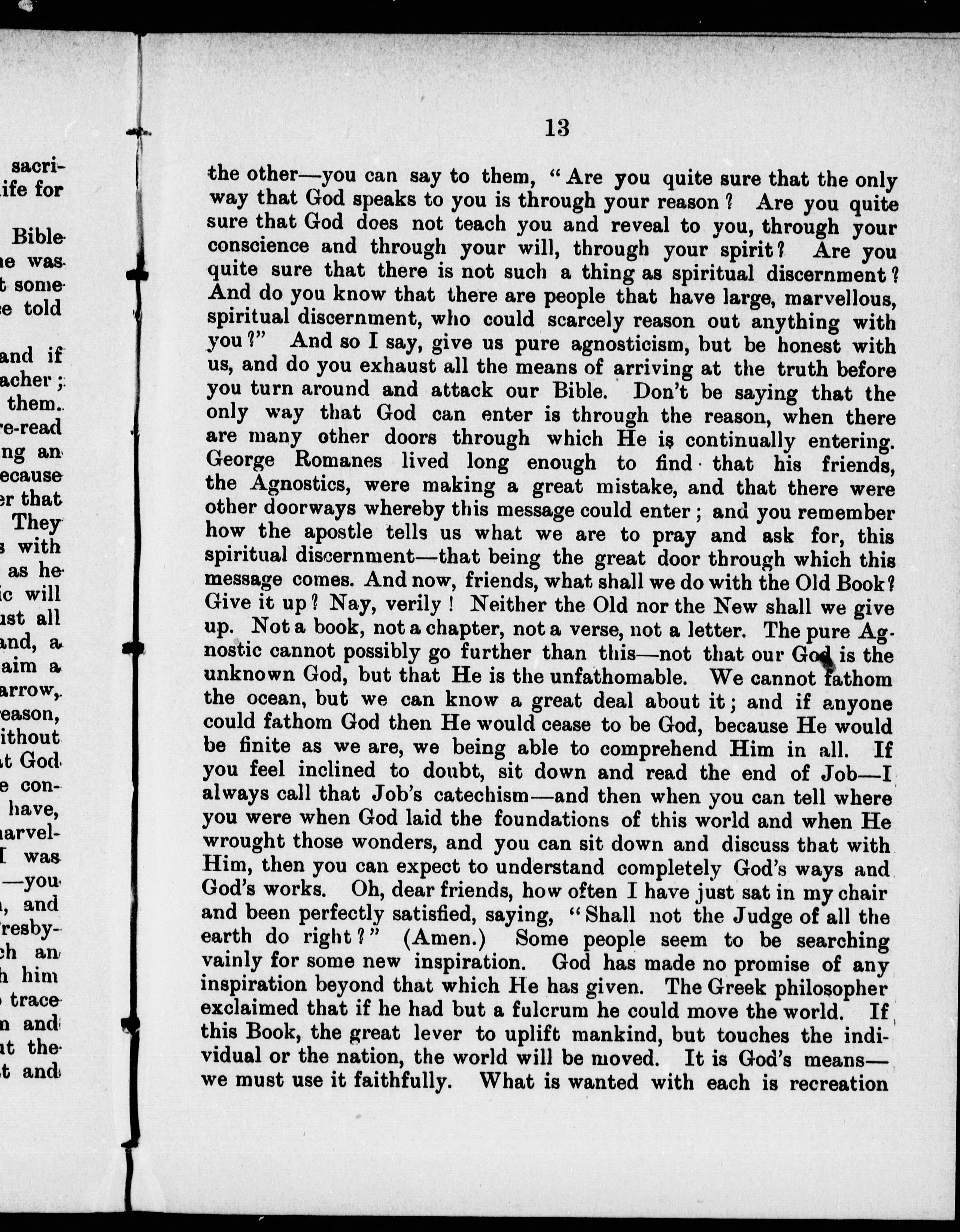 The world and the word : notes of an address delivered at the Sabbath school convention, Hamilton, October, 1897, for which it was proposed in the Hamilton Ministerial Association to excommunicate the speaker