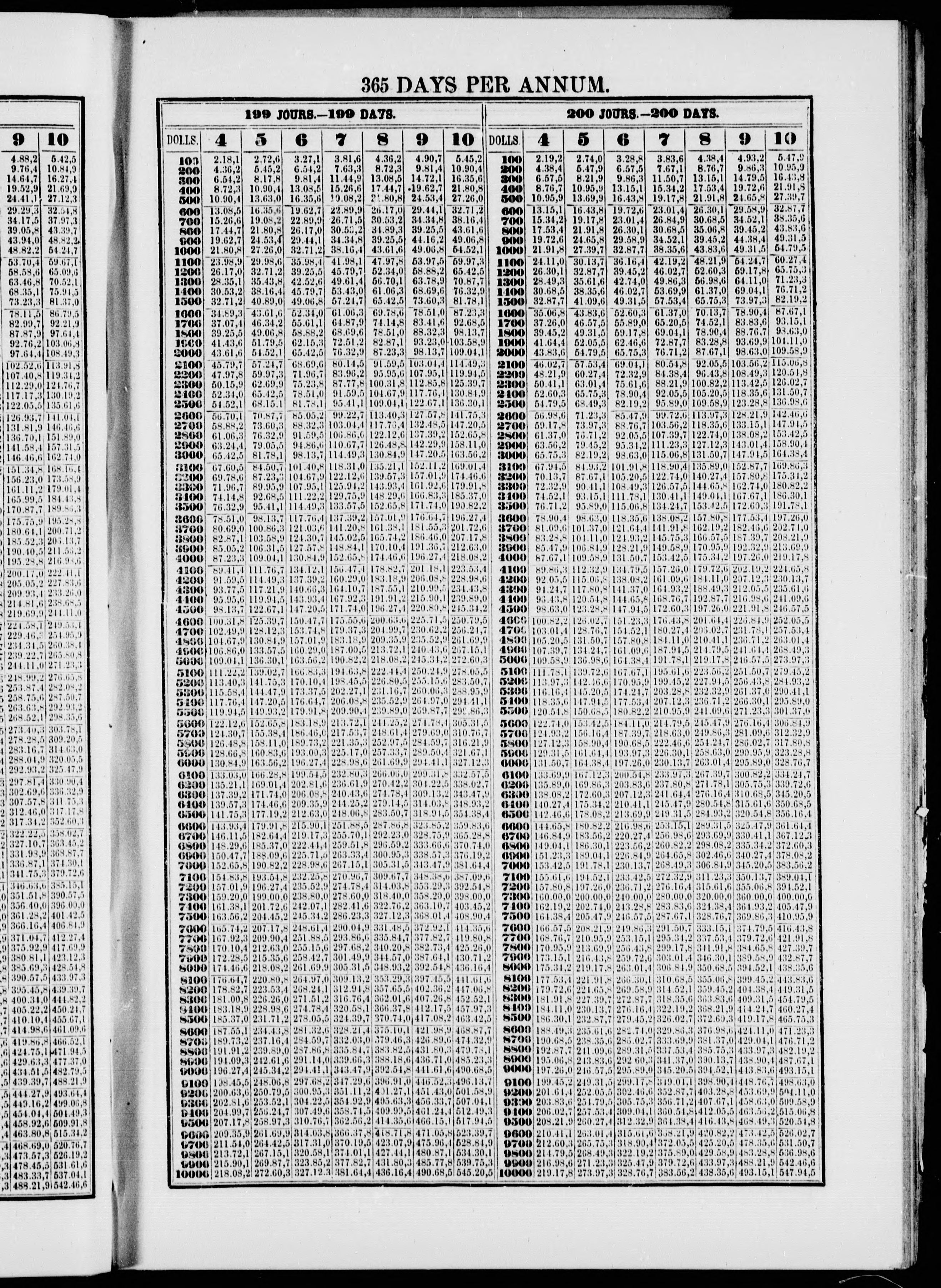 Interest tables at 4, 5, 6, 7, 8, 9 & 10 per cent per annum :