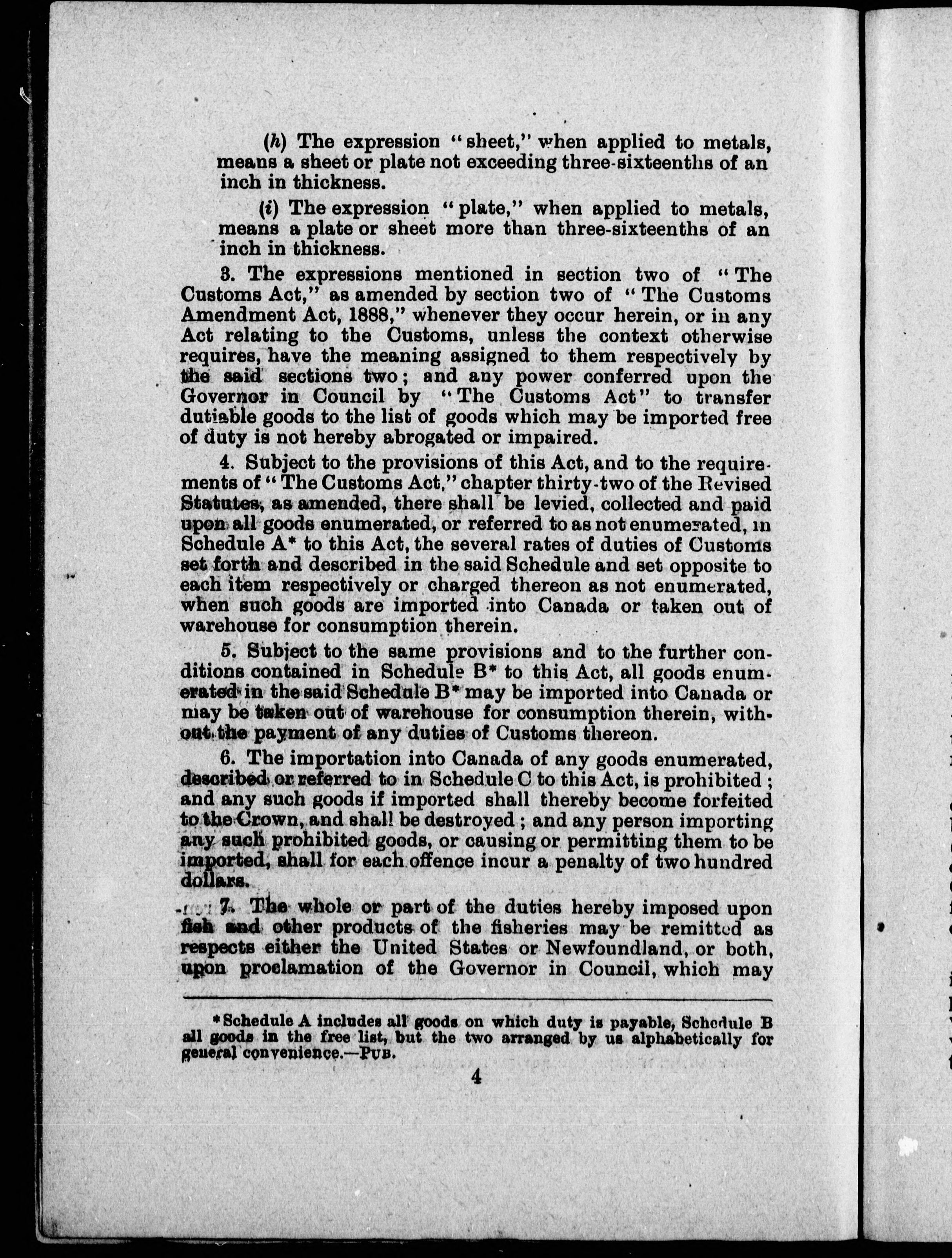 Includes "An Act to Consolidate and Amend the Acts Respecting the Duties of Customs (known as the Customs Tariff, 1894)--p. 3.