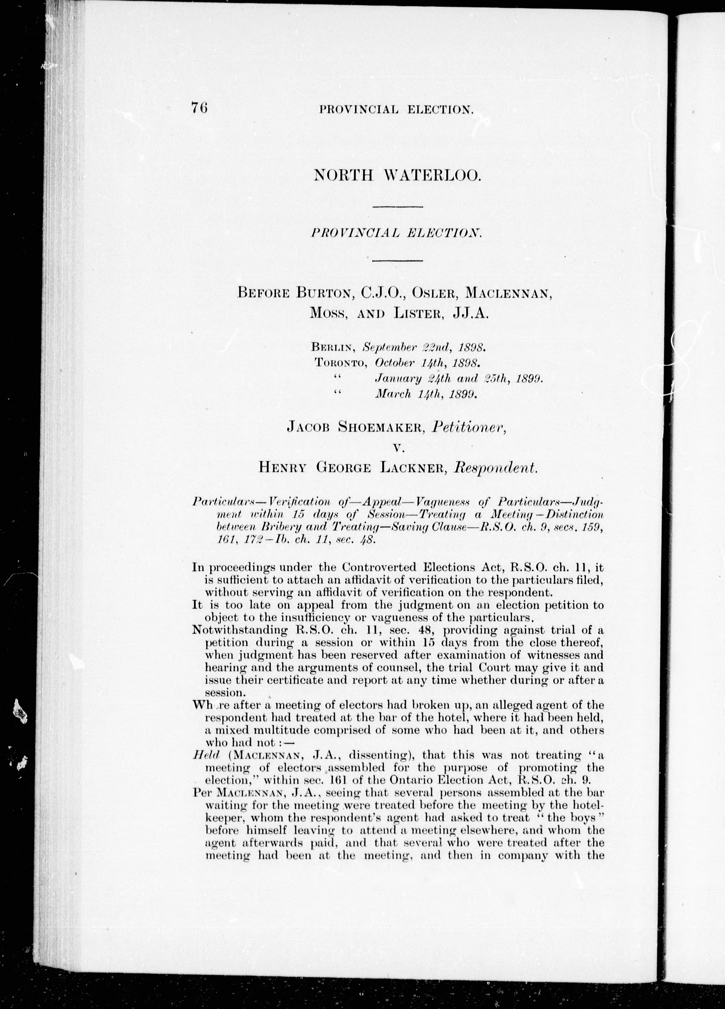 - Election cases : reports of decisions under the Dominion and Ontario election acts, and the Ontario Voters' Lists Act, 1891-1900 : with a table of the names of cases reported, a table of the names of cases cited and a digest of the principal matters.