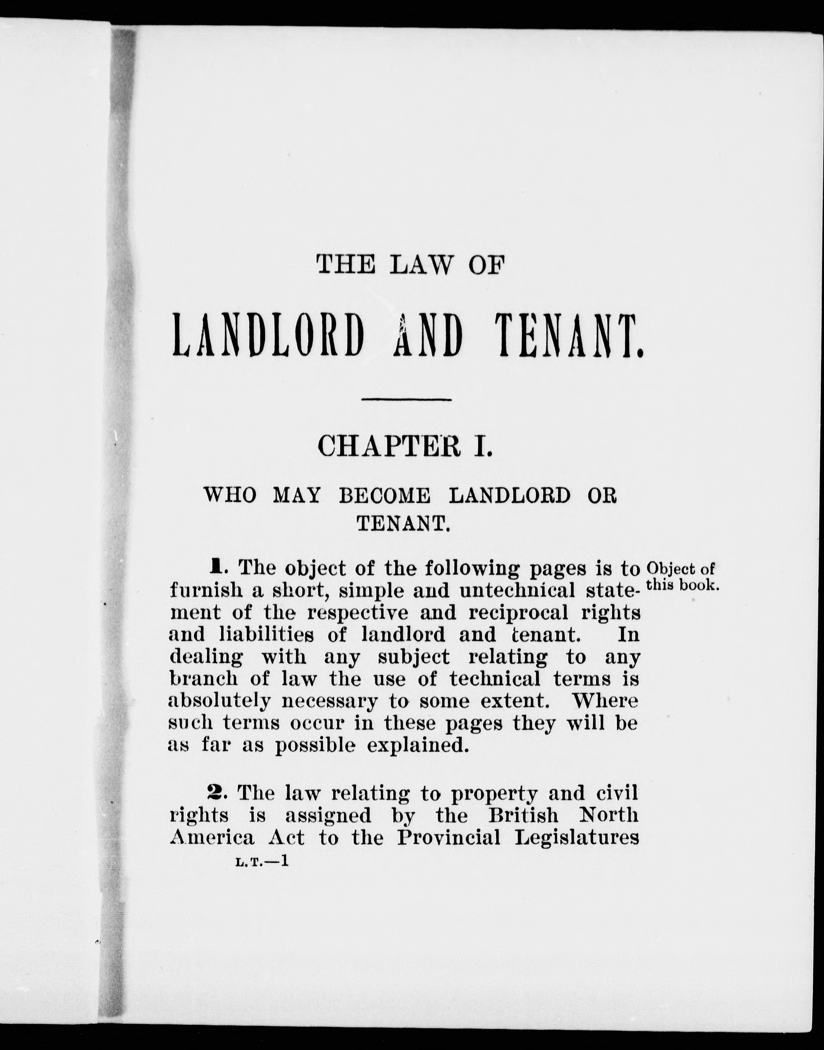 Manual of the law of landlord and tenant for use in the province of Ontario /