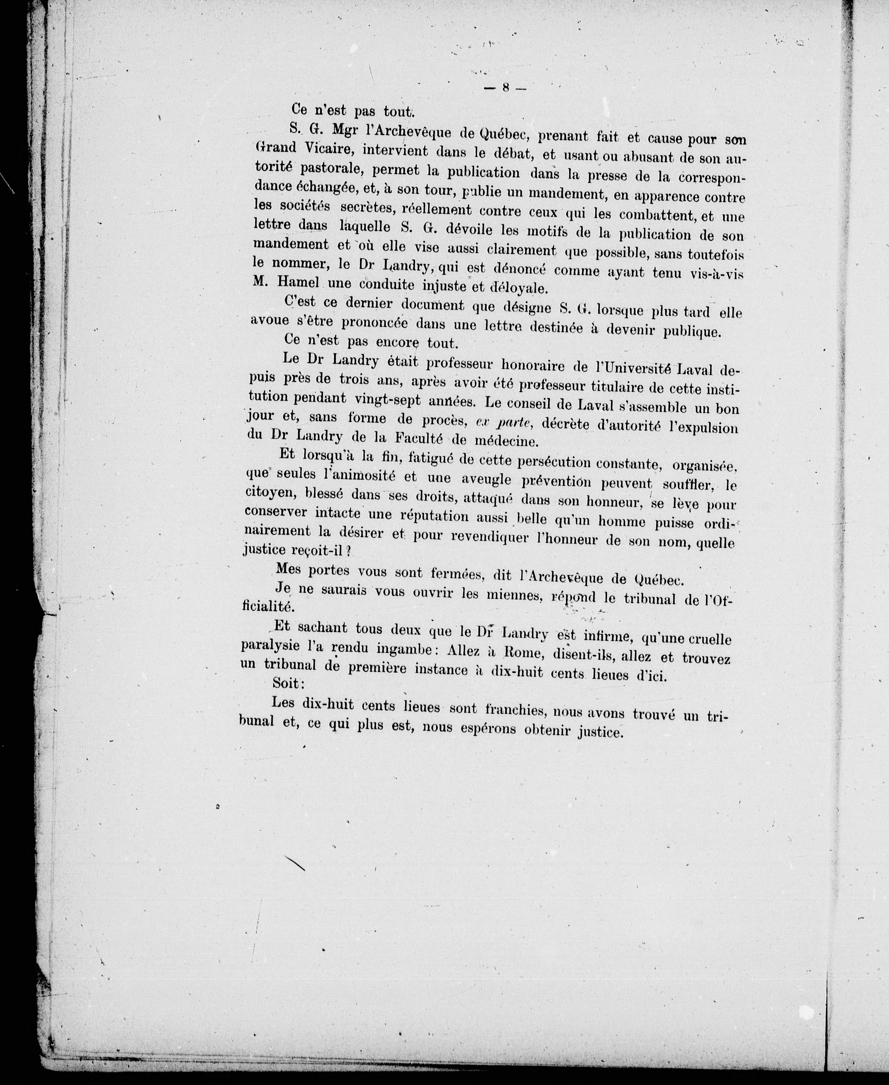 Landry vs Hamel : sommaire, mémoire, documents et pièces justificatives