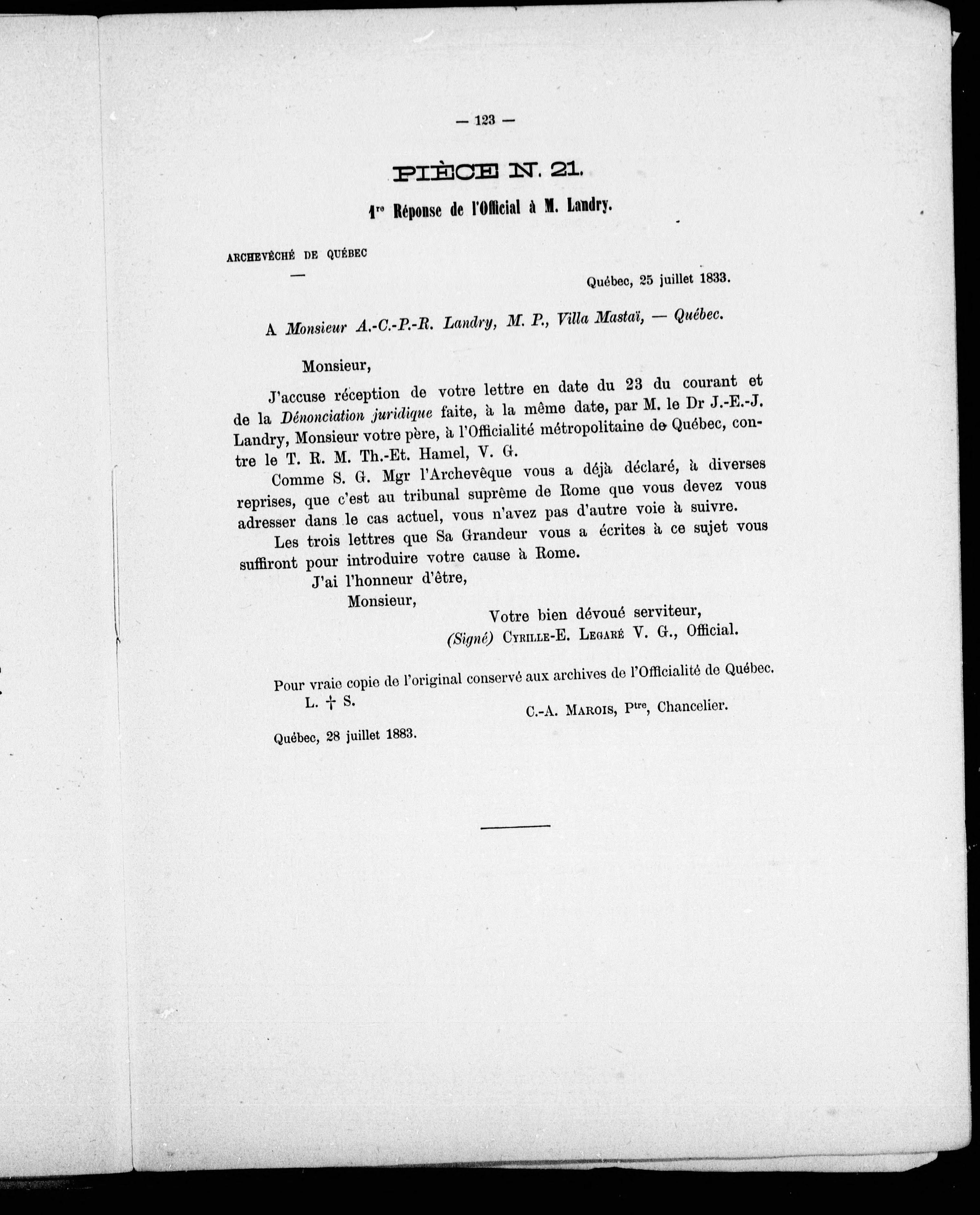 Landry vs Hamel : sommaire, mémoire, documents et pièces justificatives