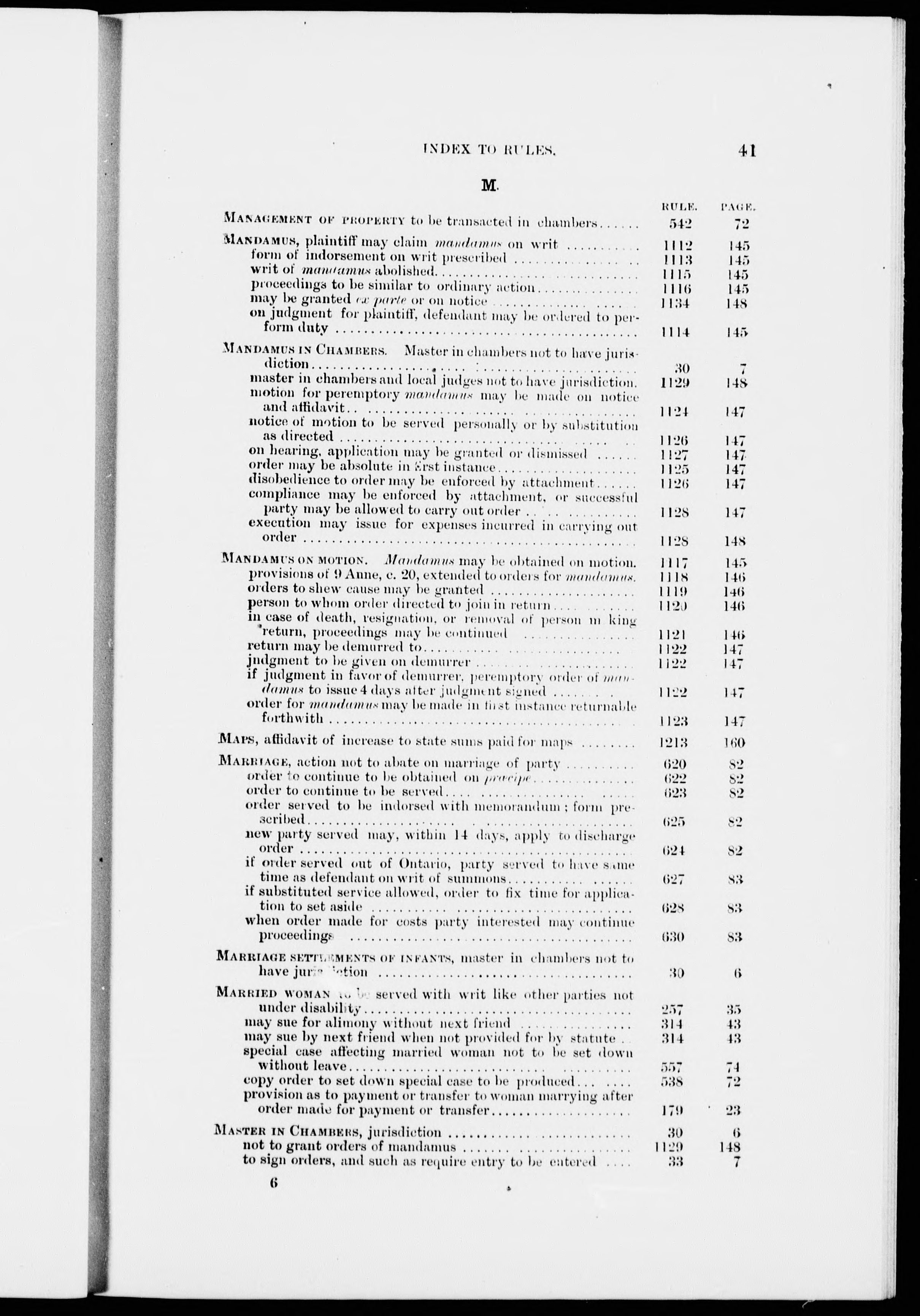 Index to the consolidated rules of practice of the Supreme Court of Judicature for Ontario