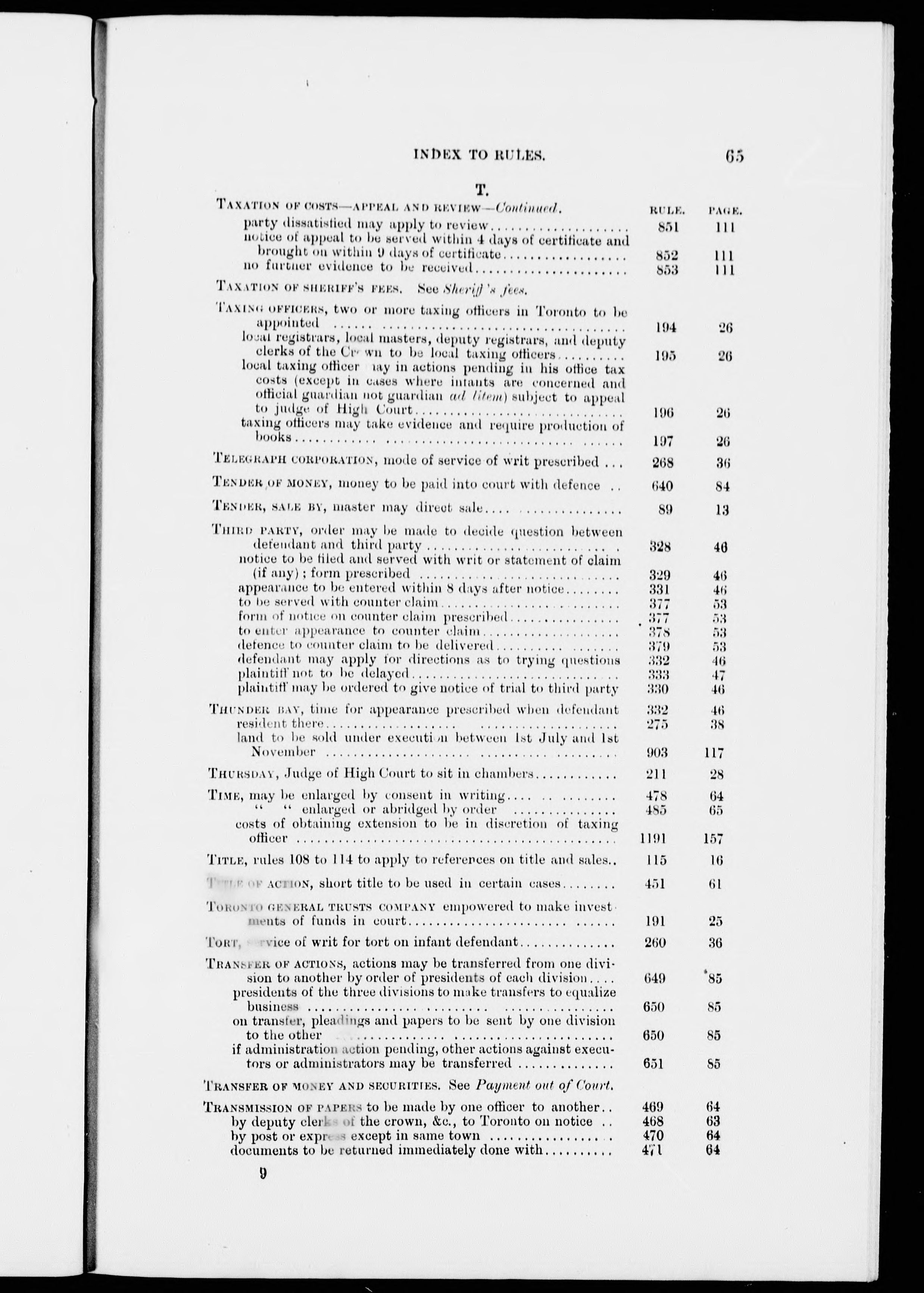 Index to the consolidated rules of practice of the Supreme Court of Judicature for Ontario