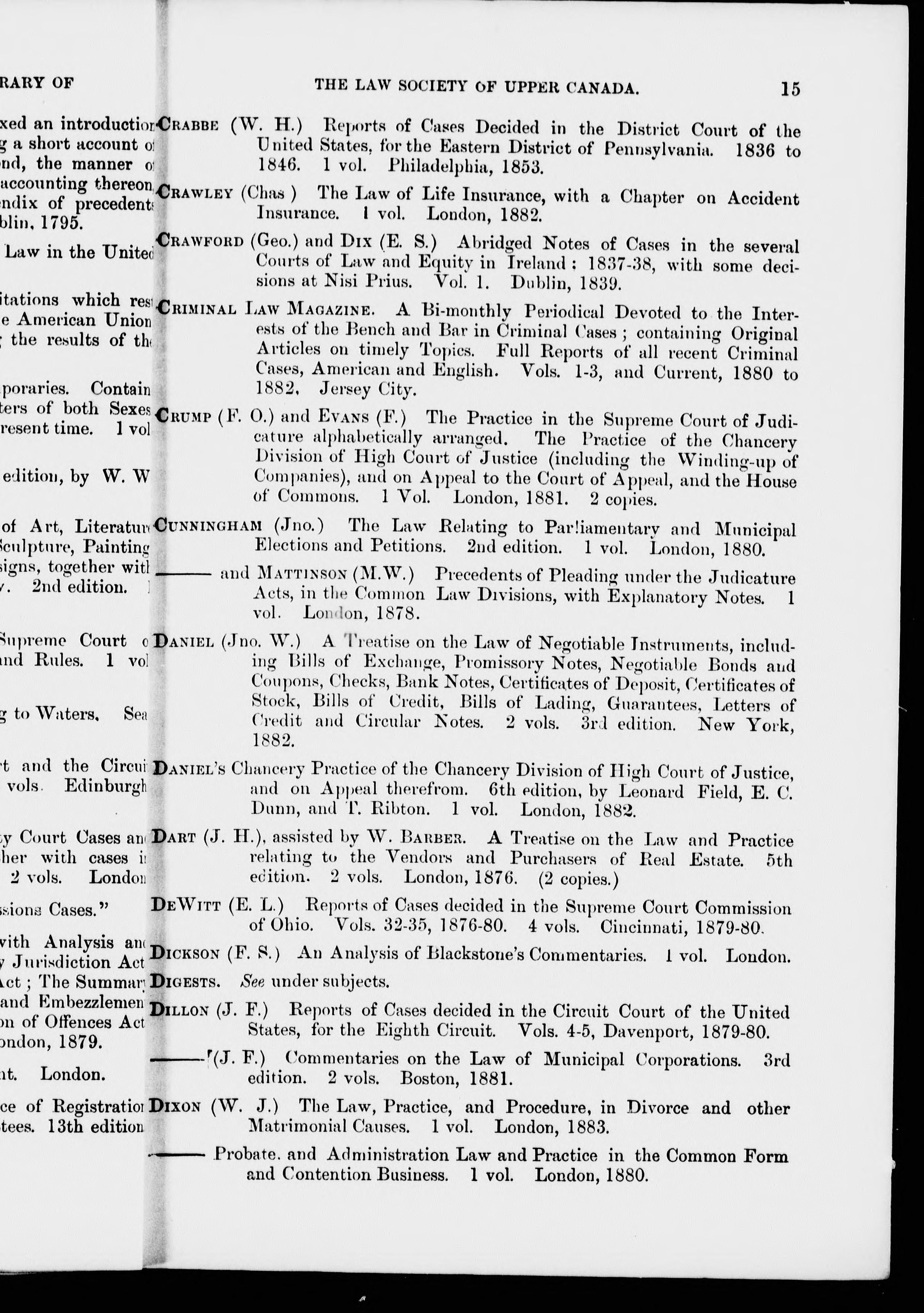Supplement to G. Mercer Adam's Catalogue of the books in the library of the Law Society of Upper Canada : with an index of subjects : being a catalogue of those books received by the Society, subsequent to the publication of G. Mercer Adam's catalogue in the year 1880 - Published