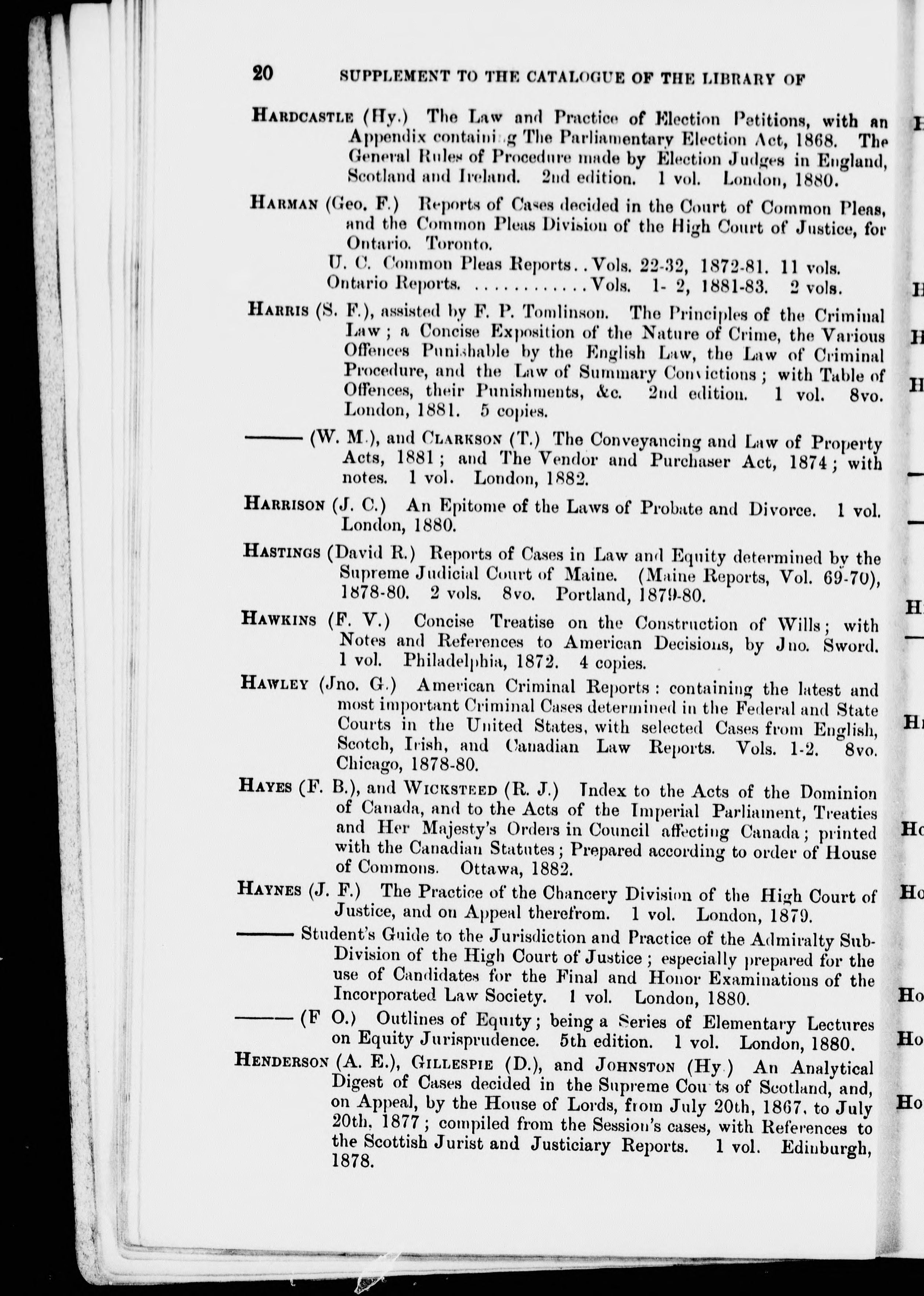 Supplement to G. Mercer Adam's Catalogue of the books in the library of the Law Society of Upper Canada :
