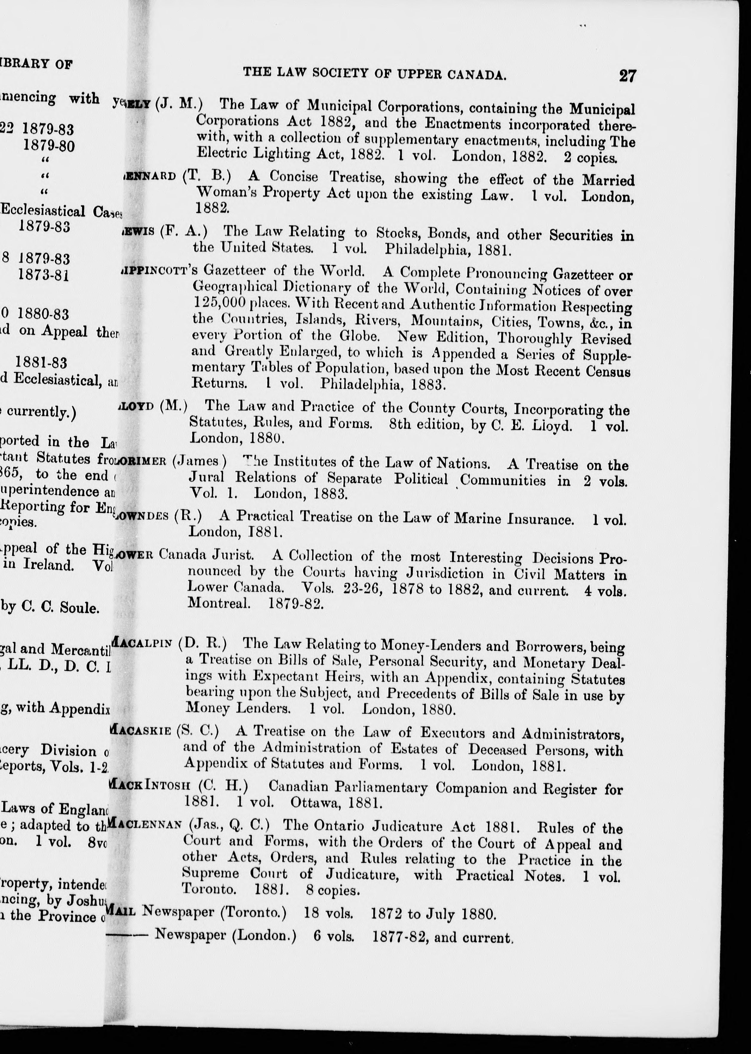 Droit -- Bibliothèques -- Ontario -- Toronto. - Document original