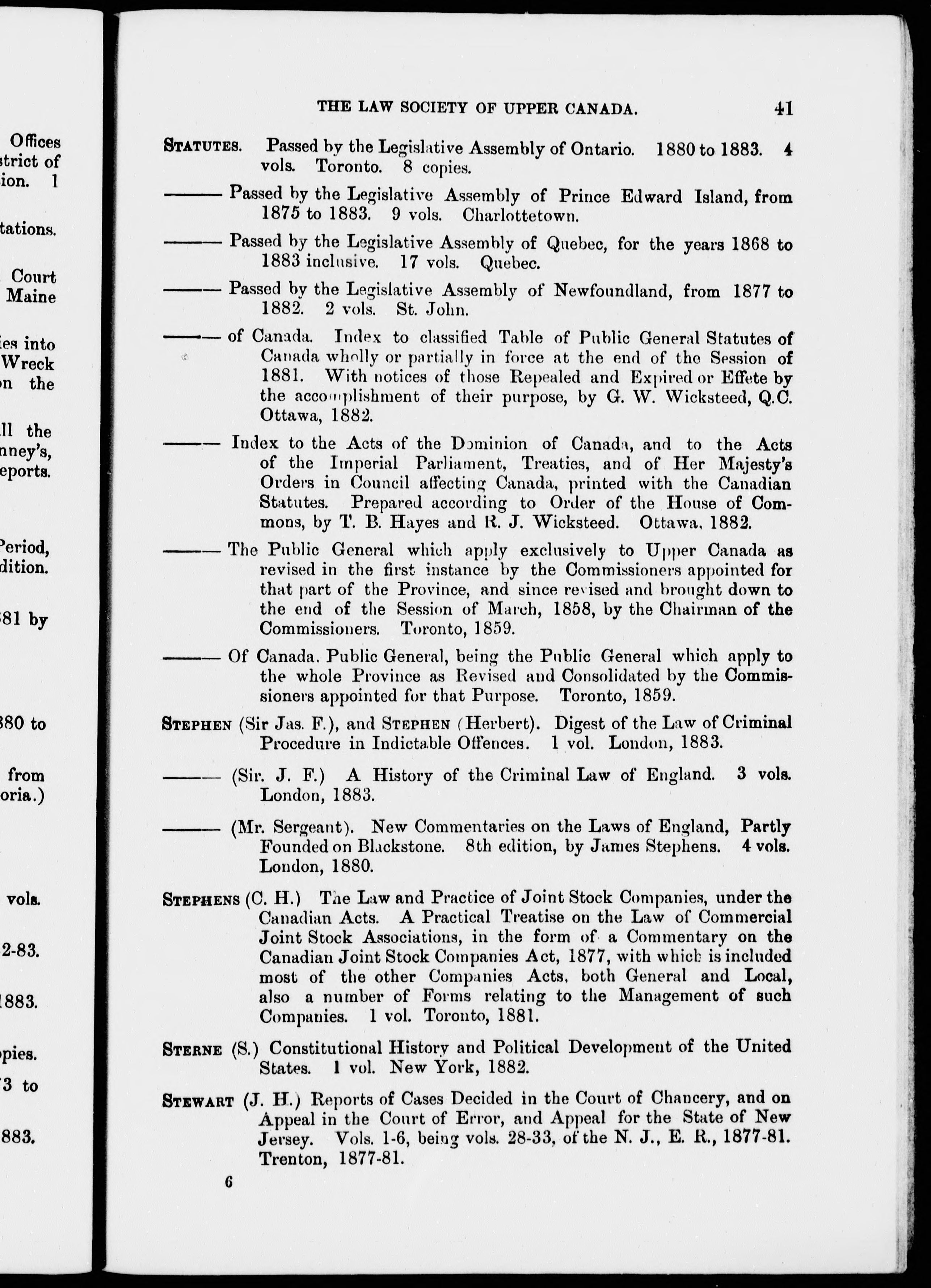 Droit -- Bibliothèques -- Ontario -- Toronto. - Document original
