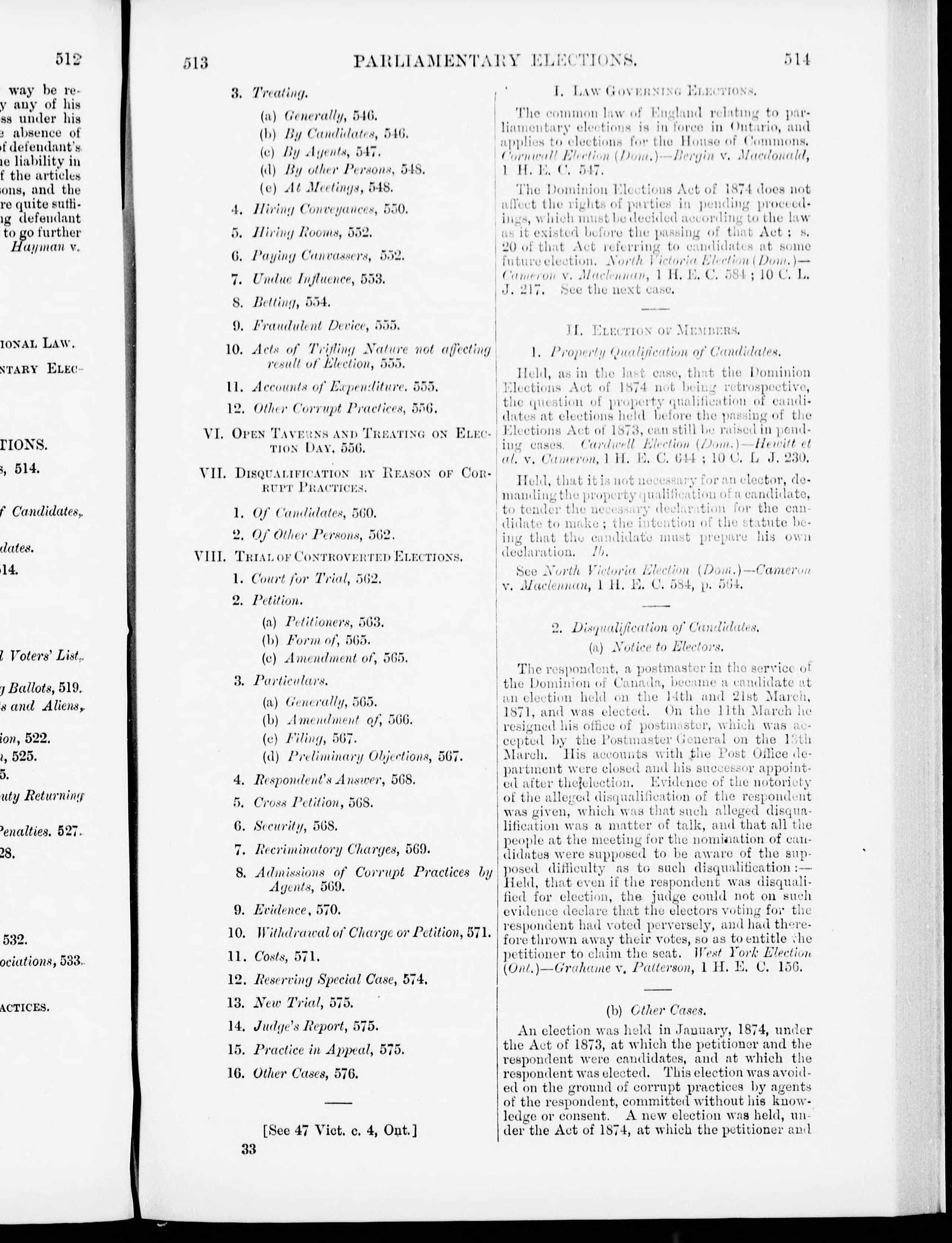 A digest of the reported cases determined in the superior courts of Ontario and the Supreme Court of Canada : contained in volumes 45-46 Queen's bench, 27-29 Chancery, 1-4 Ontario reports, 31-32 common pleas, 5-8 appeal reports, 8-9 practice reports, 3-7 supreme court reports, 1 Hodgins's election cases : being a continuation of Robinson & Joseph's digest, with a table of cases affirmed, reversed or specially considered