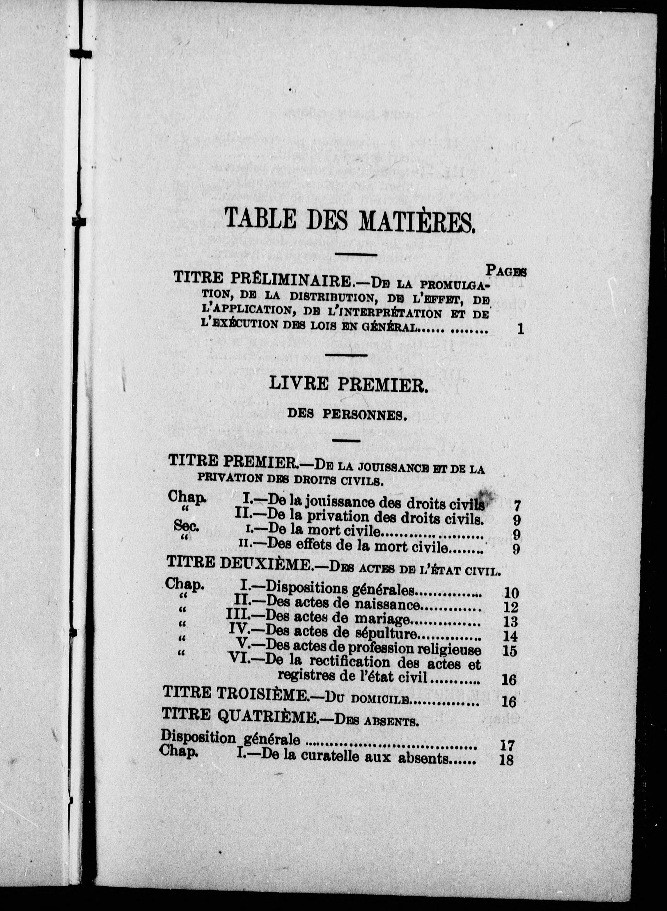 Le Code civil du Bas-Canada (en force depuis le 1er août 1866) :