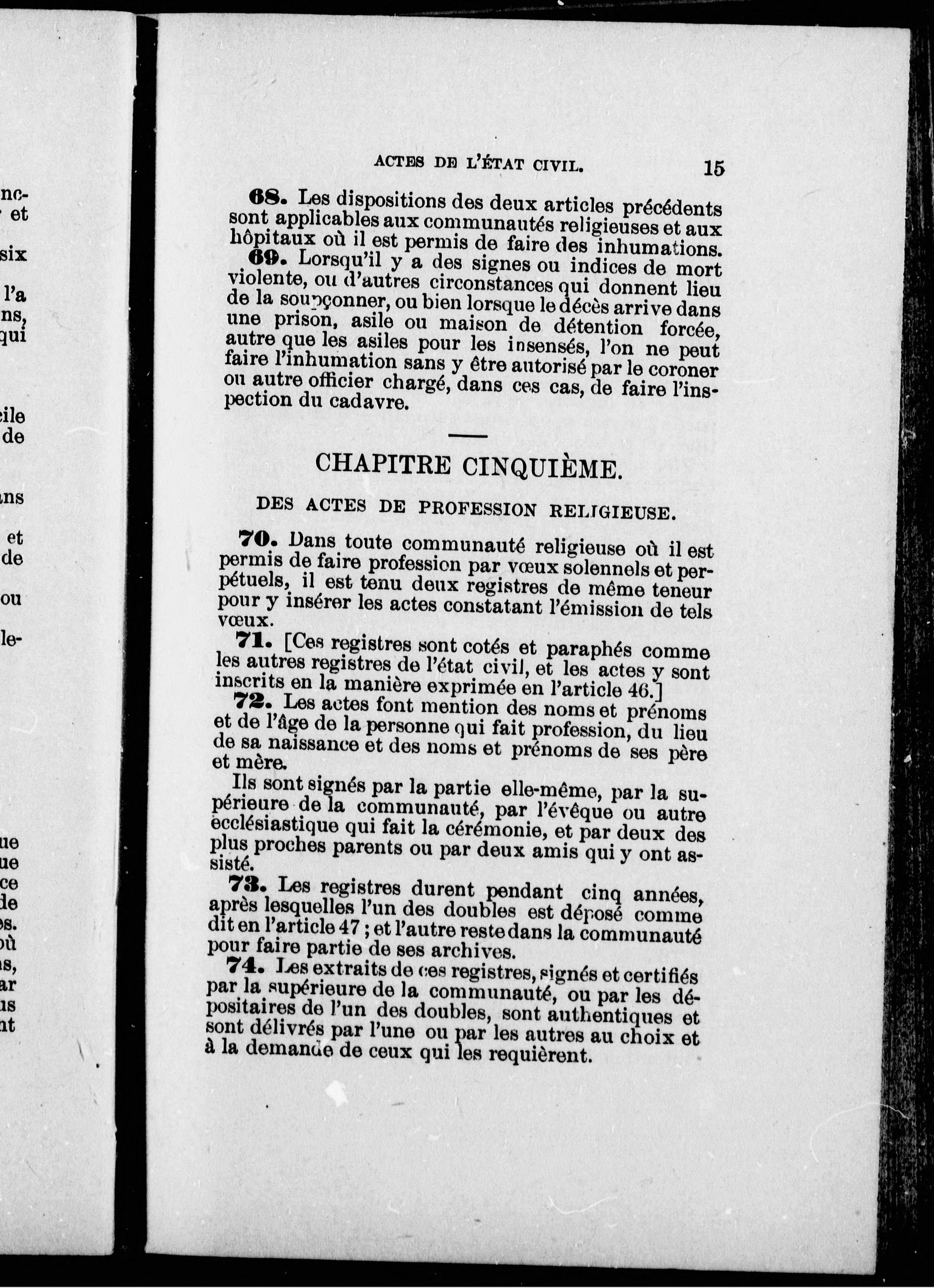 Le Code civil du Bas-Canada (en force depuis le 1er août 1866) :