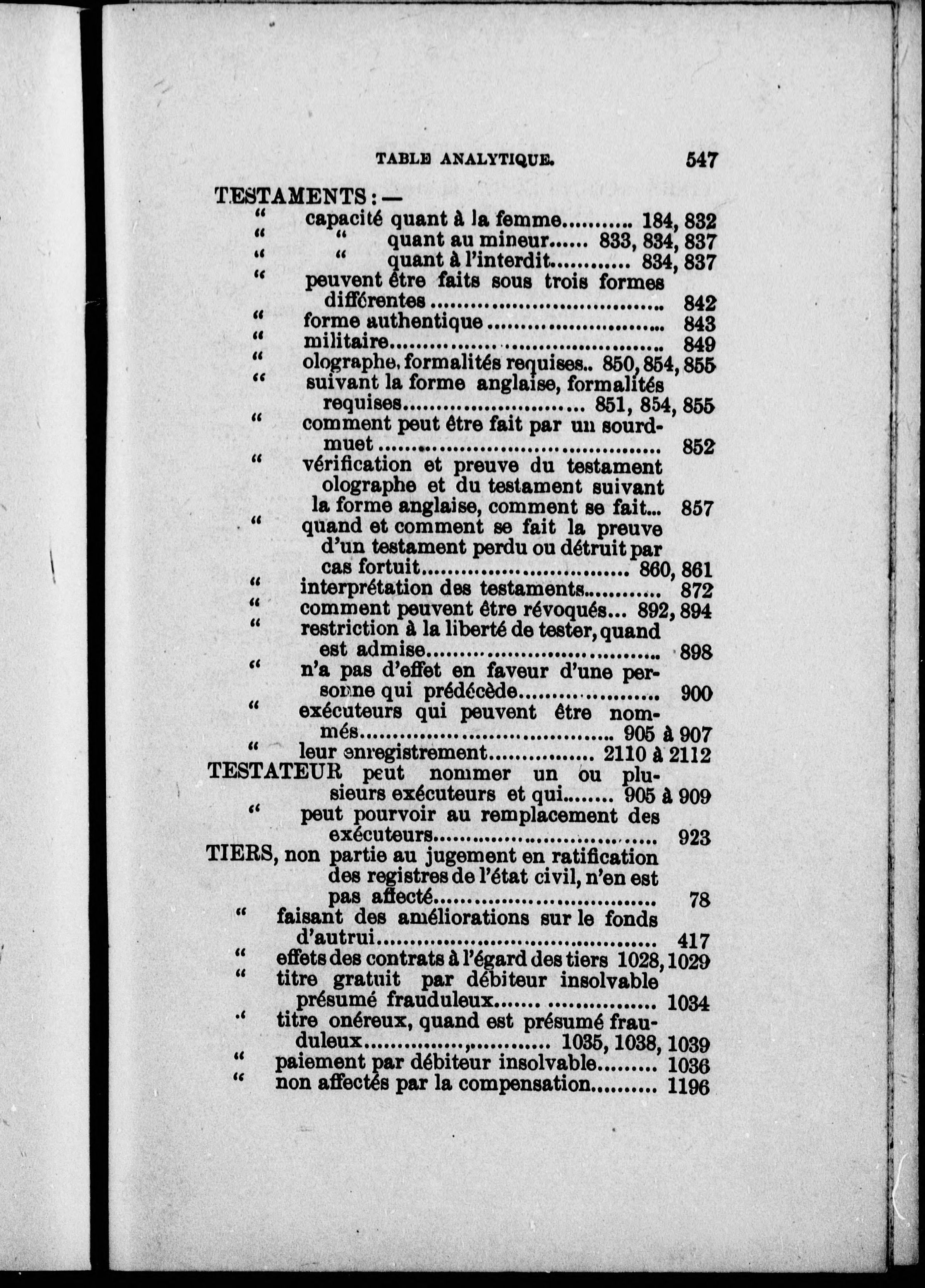 Le Code civil du Bas-Canada (en force depuis le 1er août 1866) :