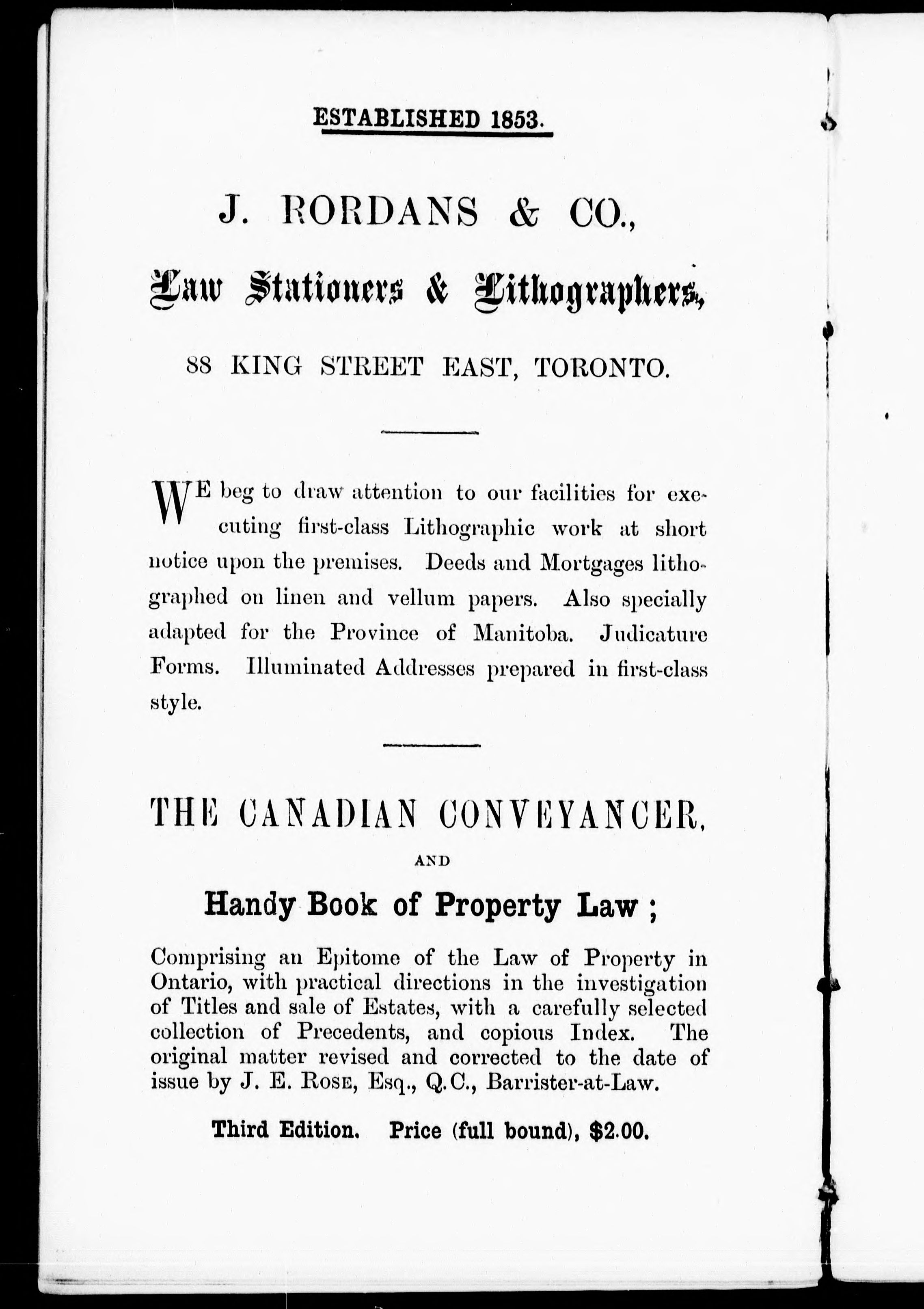 Toronto : J. Rordans, 1882.; 205 images, 202 avec recherche en texte intégral