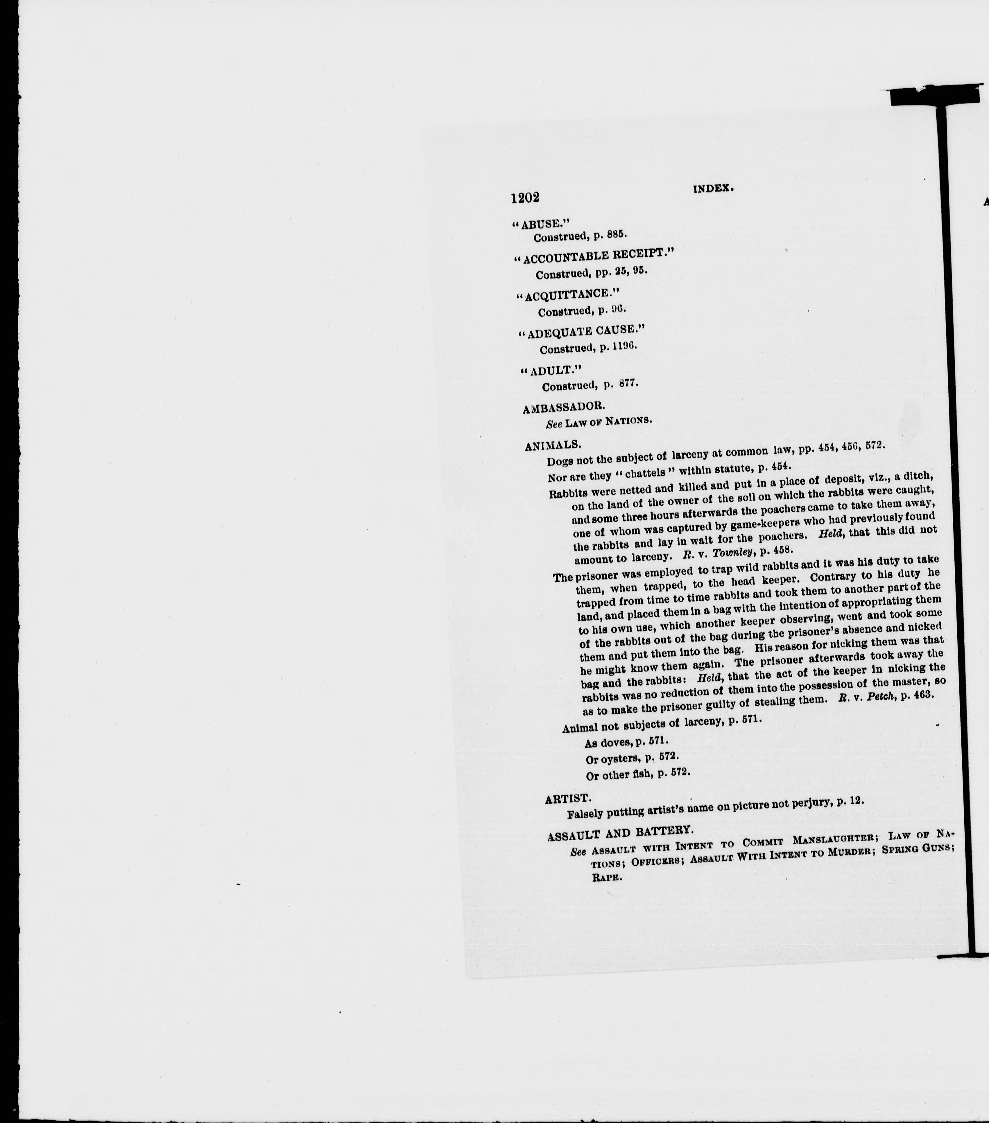 The Adjudged cases on defences to crime. including special defences to crime against the property and persons of individuals, viz. forgery; fraud and false pretences; larceny; receiving stolen property; robbery; abduction; seduction; assault; assault and battery; assault with intent; false imprisonment; rape and homicide