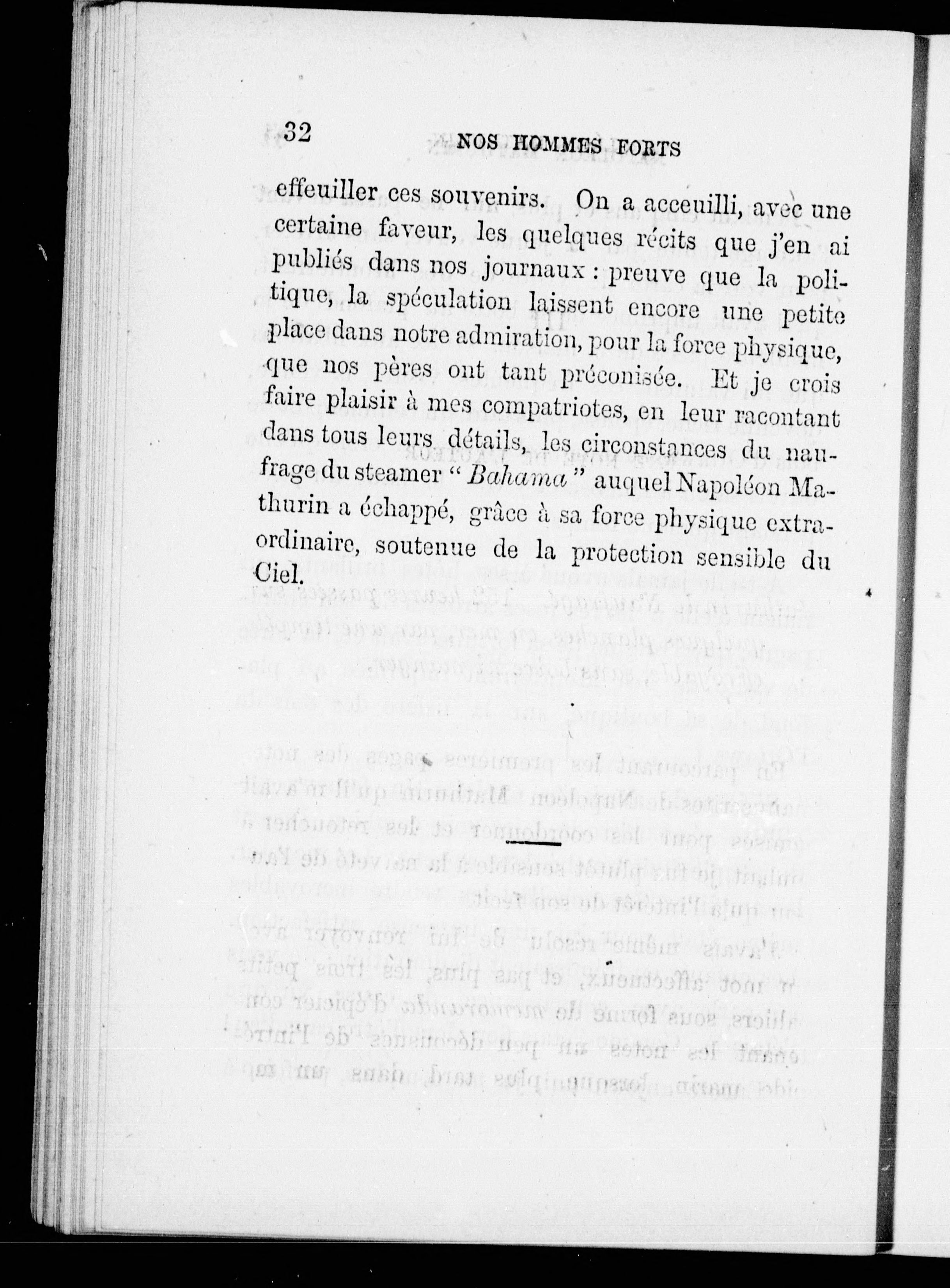 - Nos hommes forts : Napoléon Mathurin, l'héroique naufragé : récit navrant du naufrage du SS. "Bahama" sur l'Atlantique