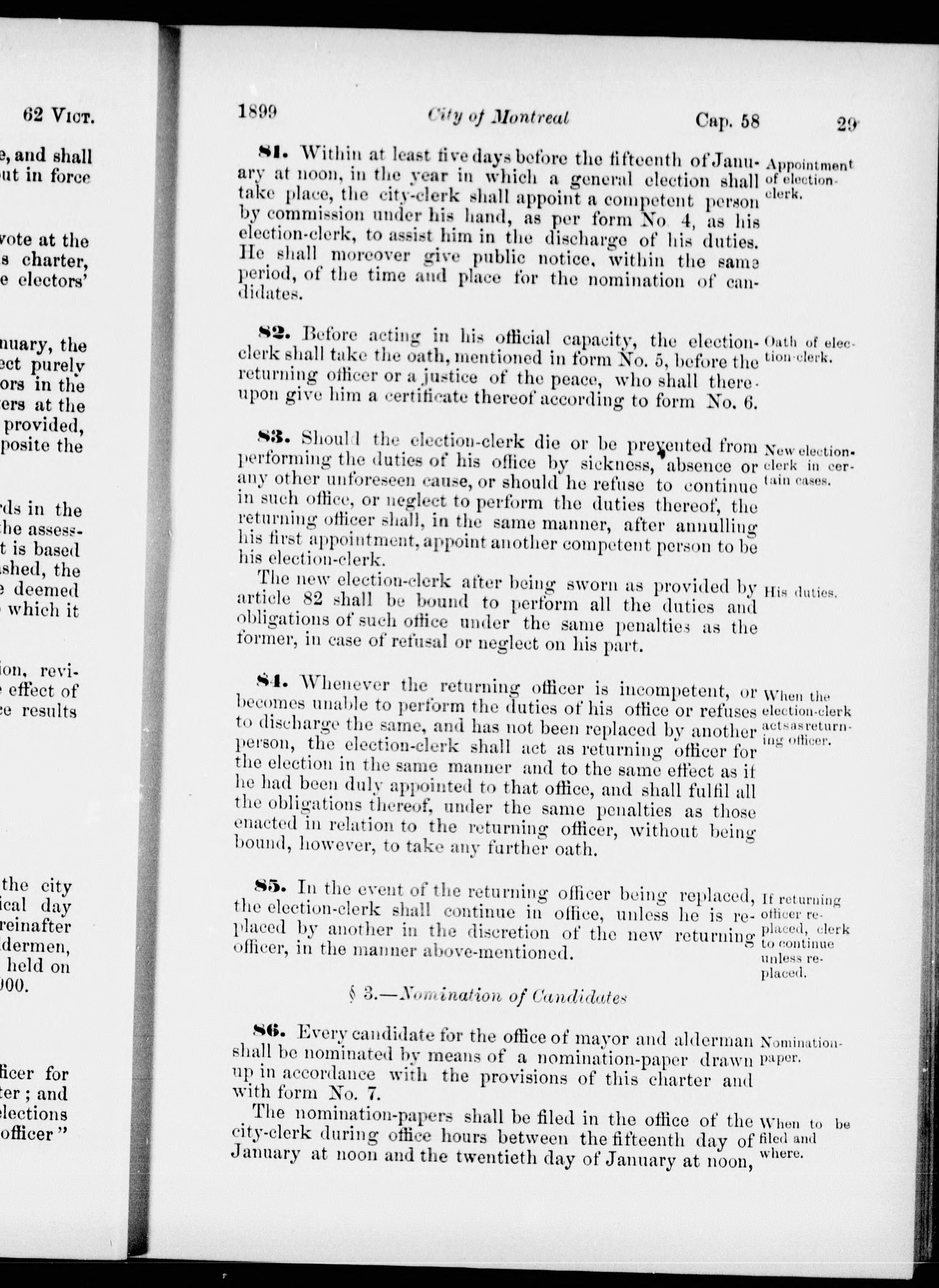Charter of the city of Montreal : as prepared by Messrs. F.X. Choquet...revised by a special committee composed of His Worship the Mayor, R. Préfontaine and of aldermen Beausoleil, McBride, Laporte, Ames, Martineau and Archambault : adopted by the Council in the month of December, 1898 and sanctioned by the lieutenant-governor of the province of Quebec, the Honorable Louis Amable Jetté, on the 10th of March, 1899. - Published